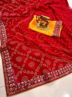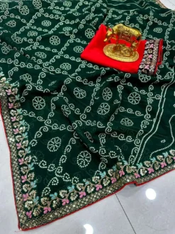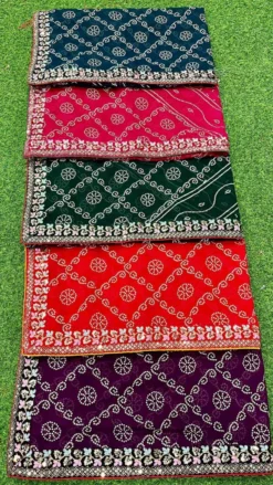 Saree: Pure CxC Georgette with beautiful Bandhani print and exclusive multi-sequins thread work in velvet fabric on the border