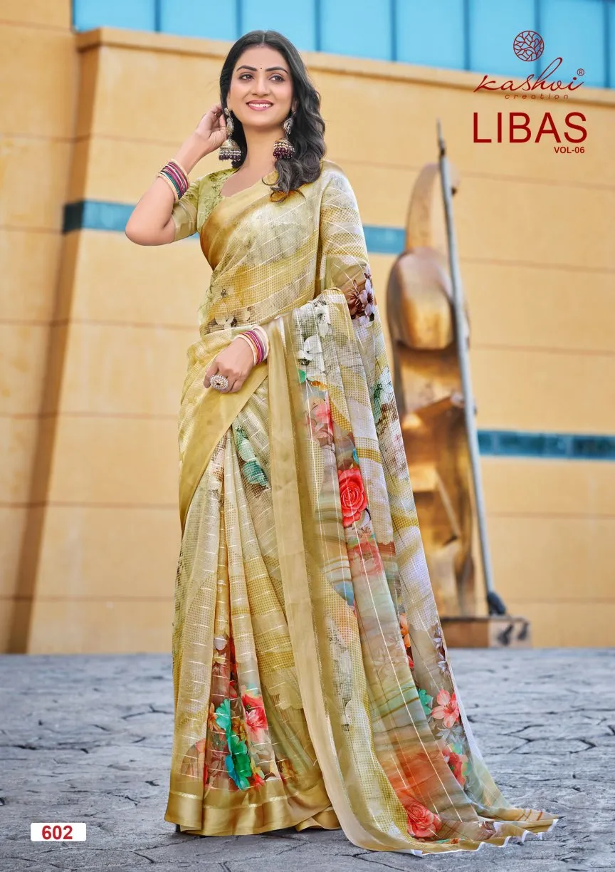 Kashvi Libas Vol 6 Dull Moss Digital Printed Casual Wear Saree Collection Sarees