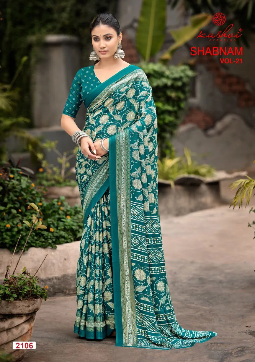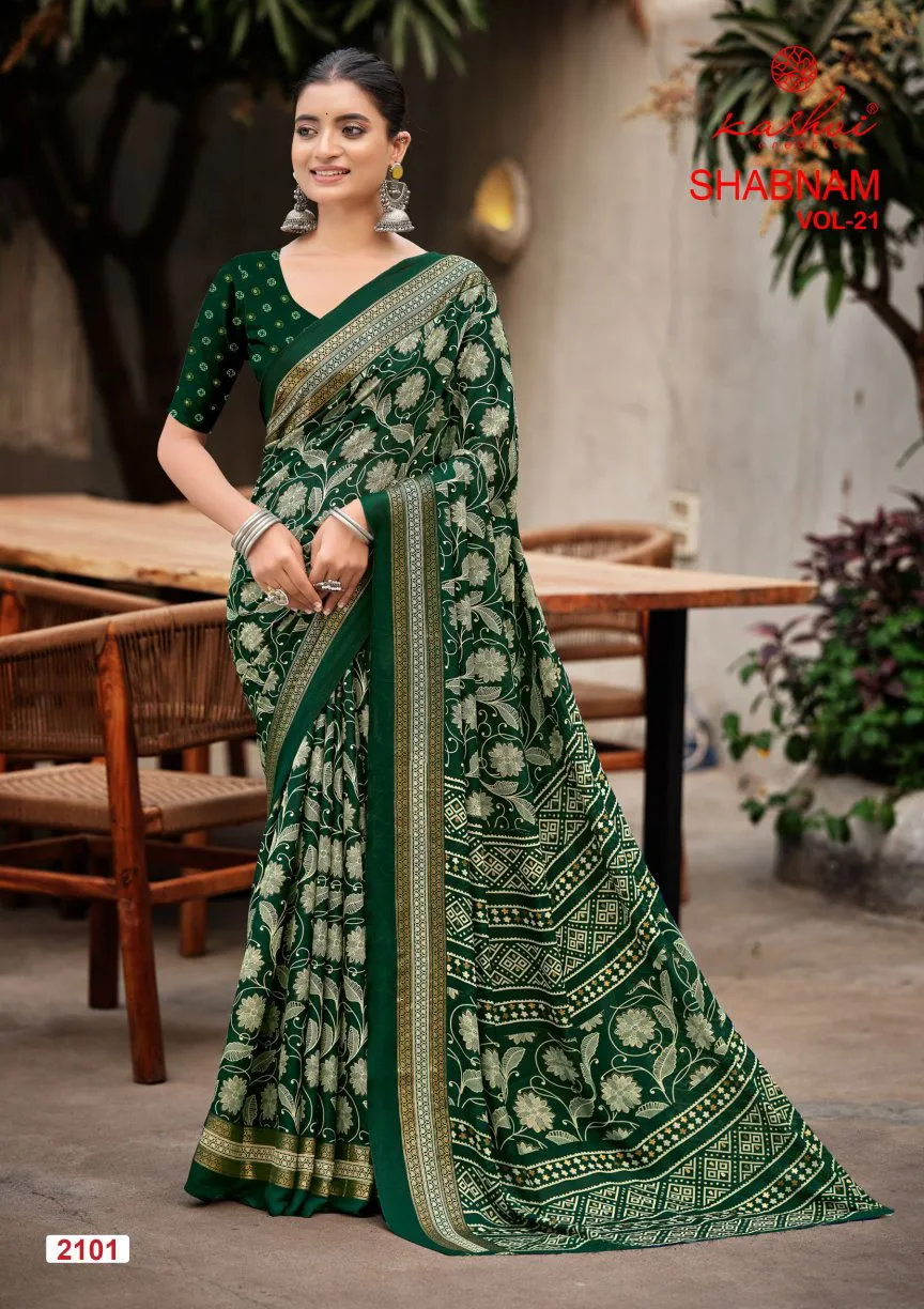 Kashvi Shabnam Vol 21 Dull Moss Foil Printed Fancy Saree Collection Sarees