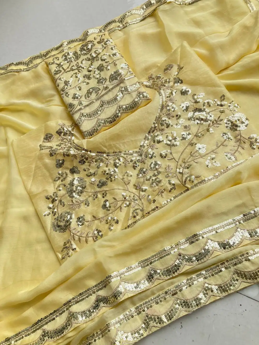 Saree: | Moss chiffon Work :- sequins lace border Cute :- 5.50 |