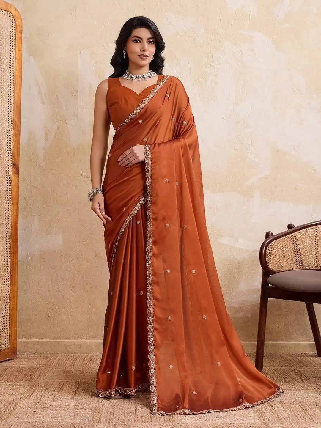 | Saree: | Rangoli Silk, Work- Embroidery Cutwork work lace border, Cut- 5.5 mtr |