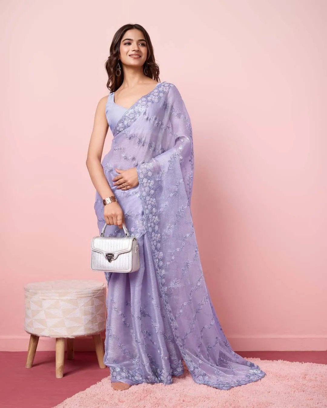 Saree: Burberry Silk ,3mm Water Sequence Embroidery with cutwork