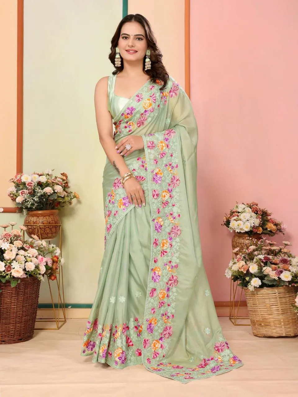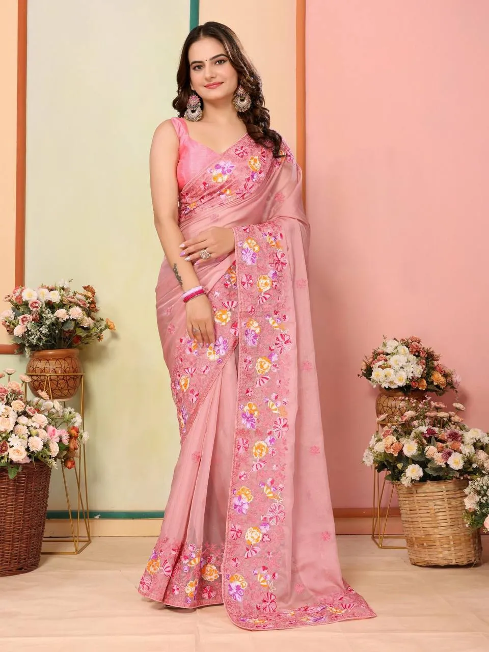 Saree: Taby Organza Silk, Embroidery with piping, Length: 5.5 mtr