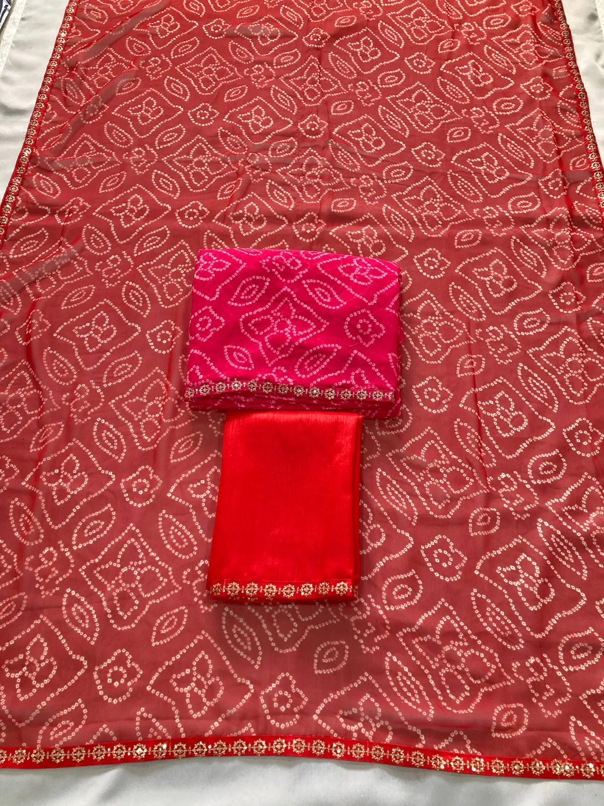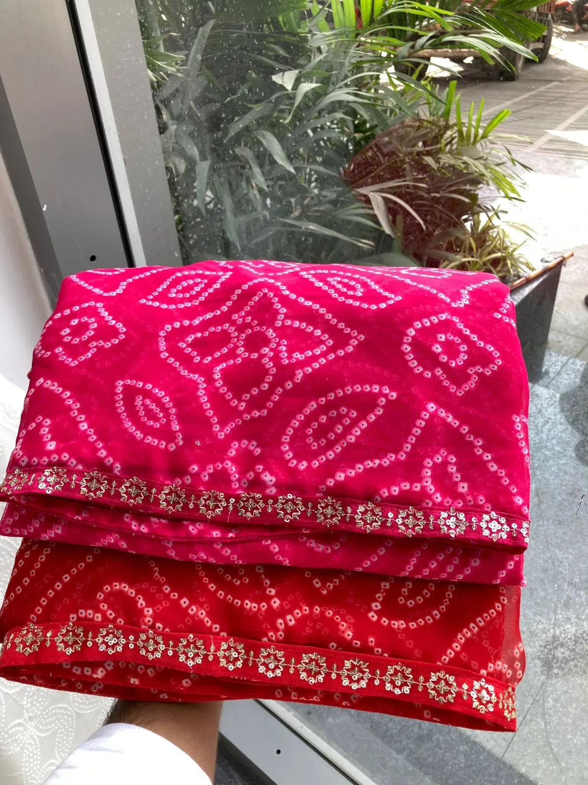 Saree Georgette, Work- Bandhej Print With Lace Border, Cut- 5.5 mtr