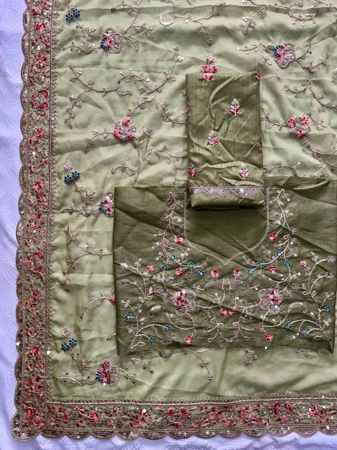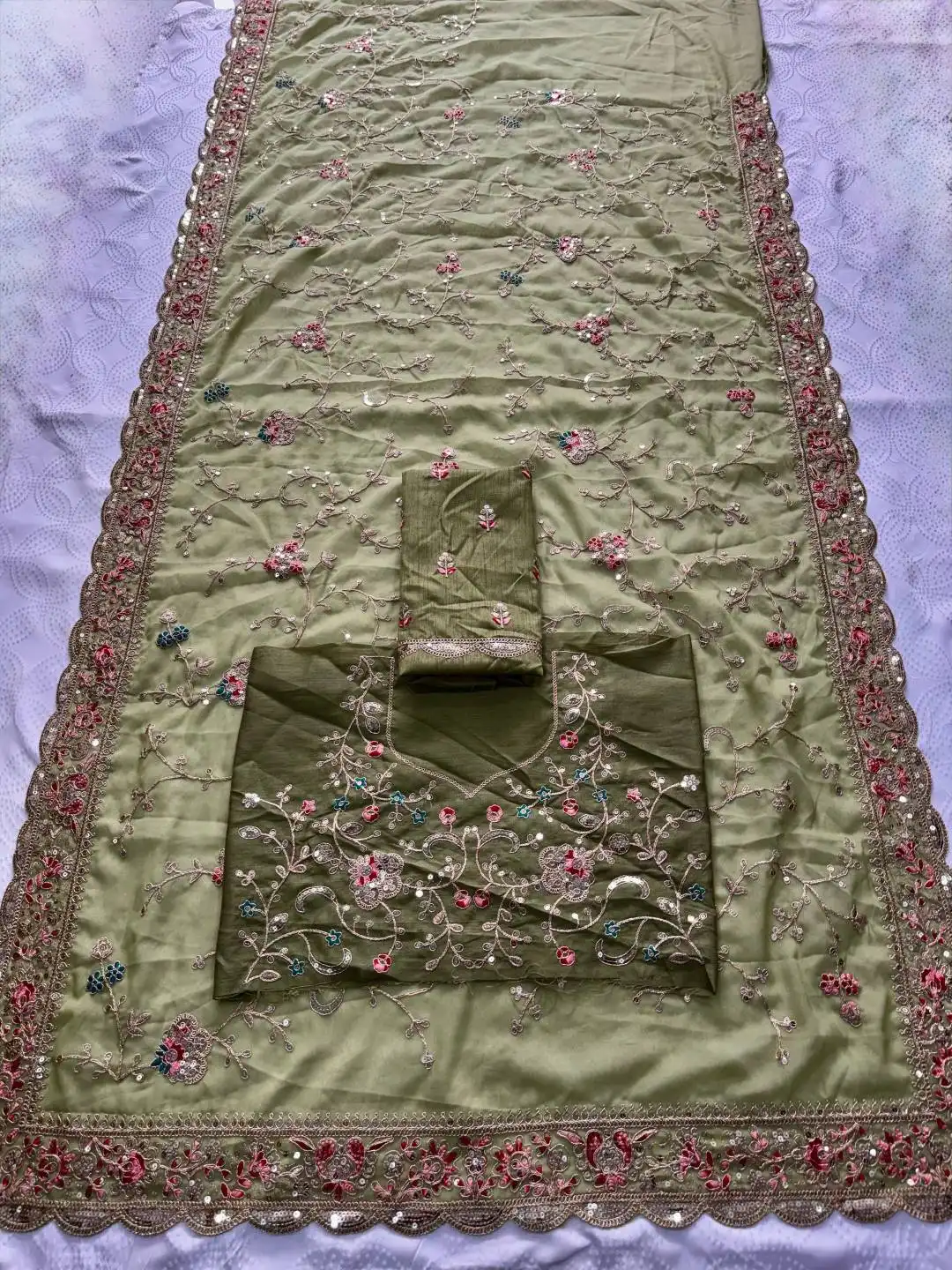 Kiara Karvi Embroidery Party Wear Saree for Women