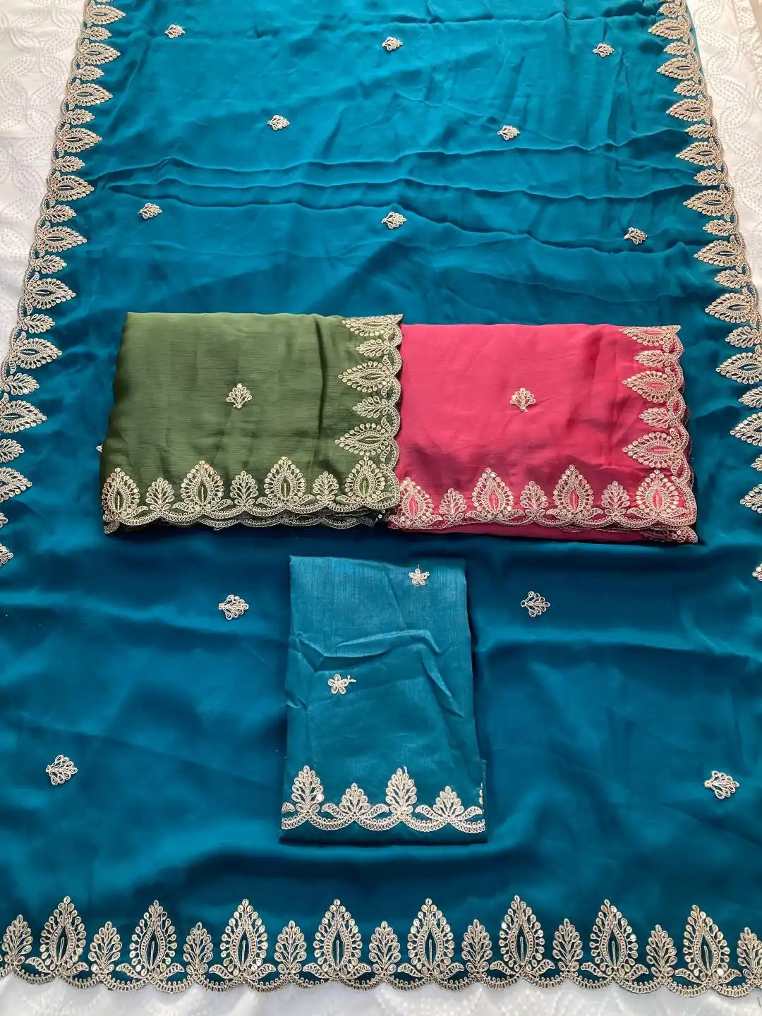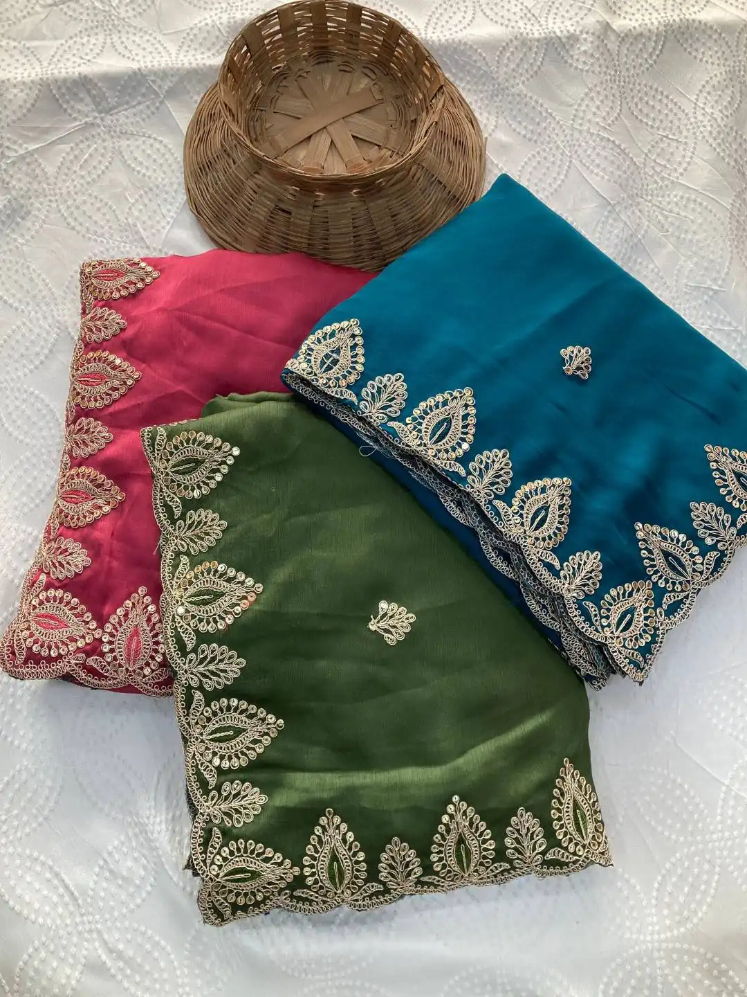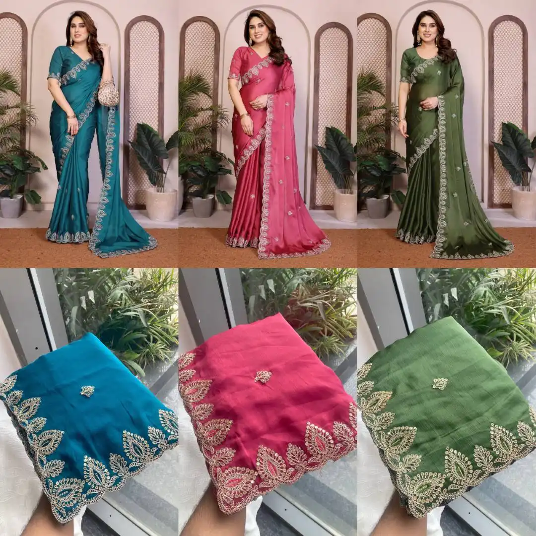 Kiara Mamta 2 Satin Chiffon Embroidery Work Party Wear Saree For Women |