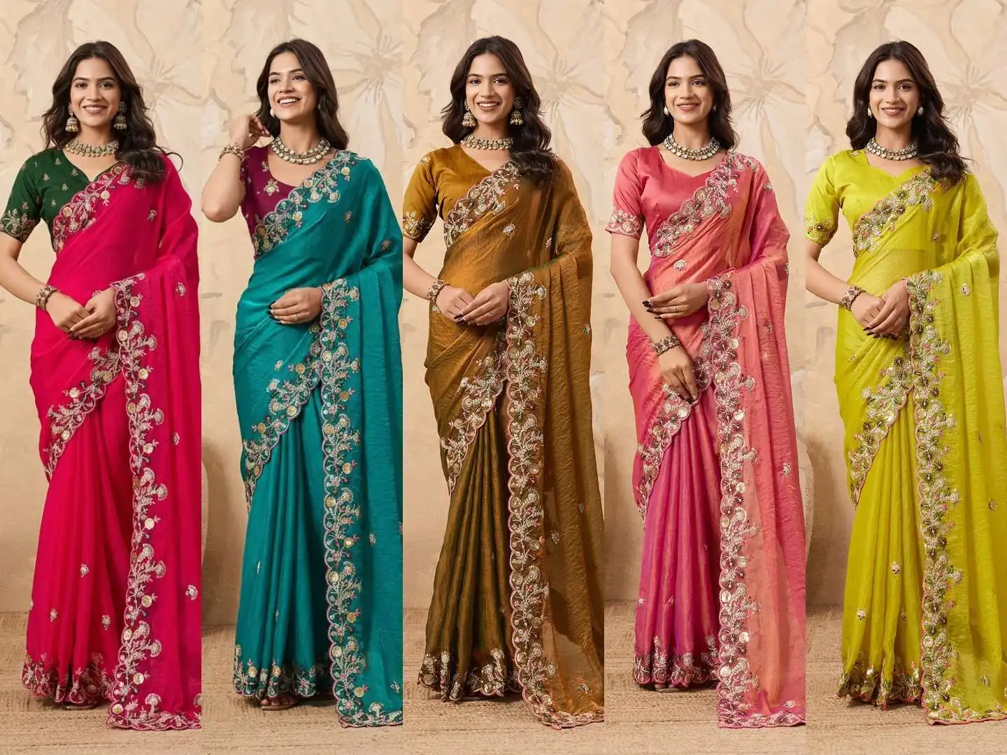 | Saree: | Soft Fendy Chiffon Work :- Embroidery Cutwork work aarco border Cut :- 5.5 mtr |