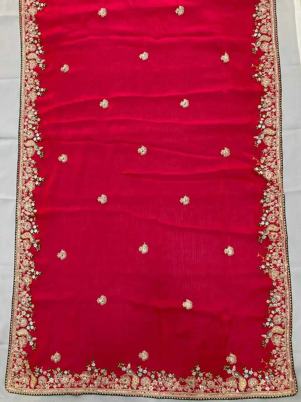 Saree: | Fendy Chiffon silk | Work :- Embroidery With Piping Border | Cut :- 5.5 mtr |