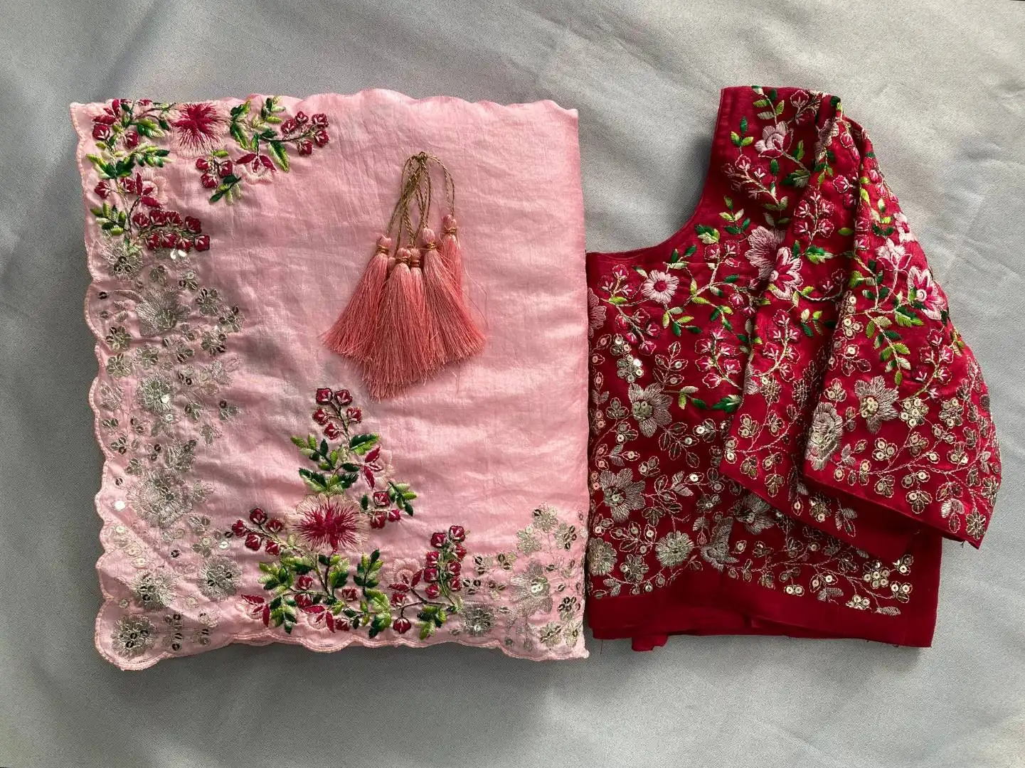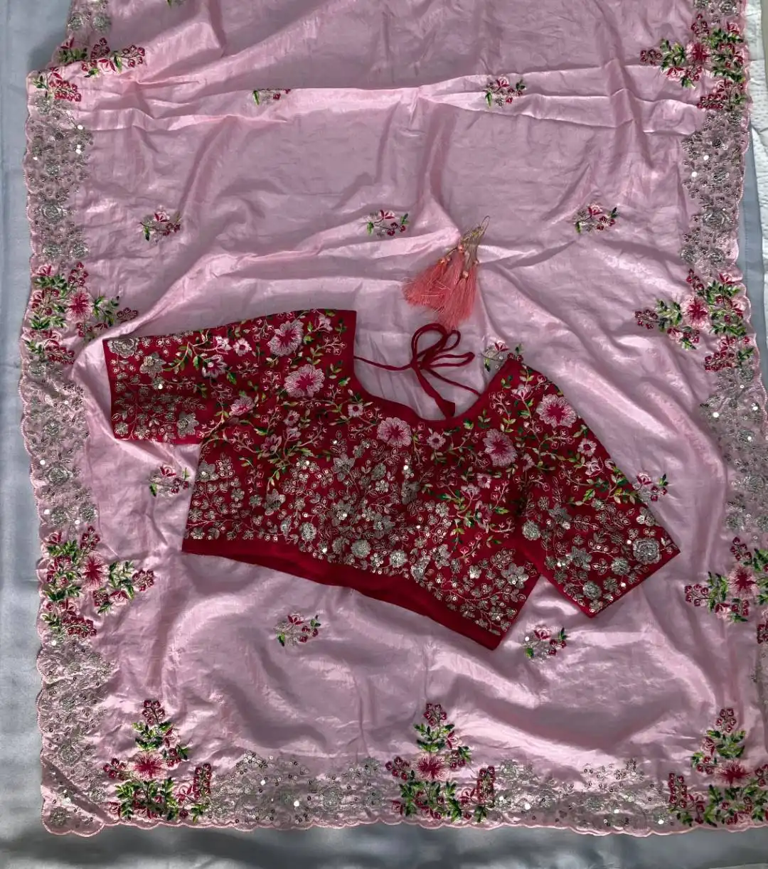 Catalog:Kiara Pink Floral Dolla Silk Saree With Heavy Embroidery Work