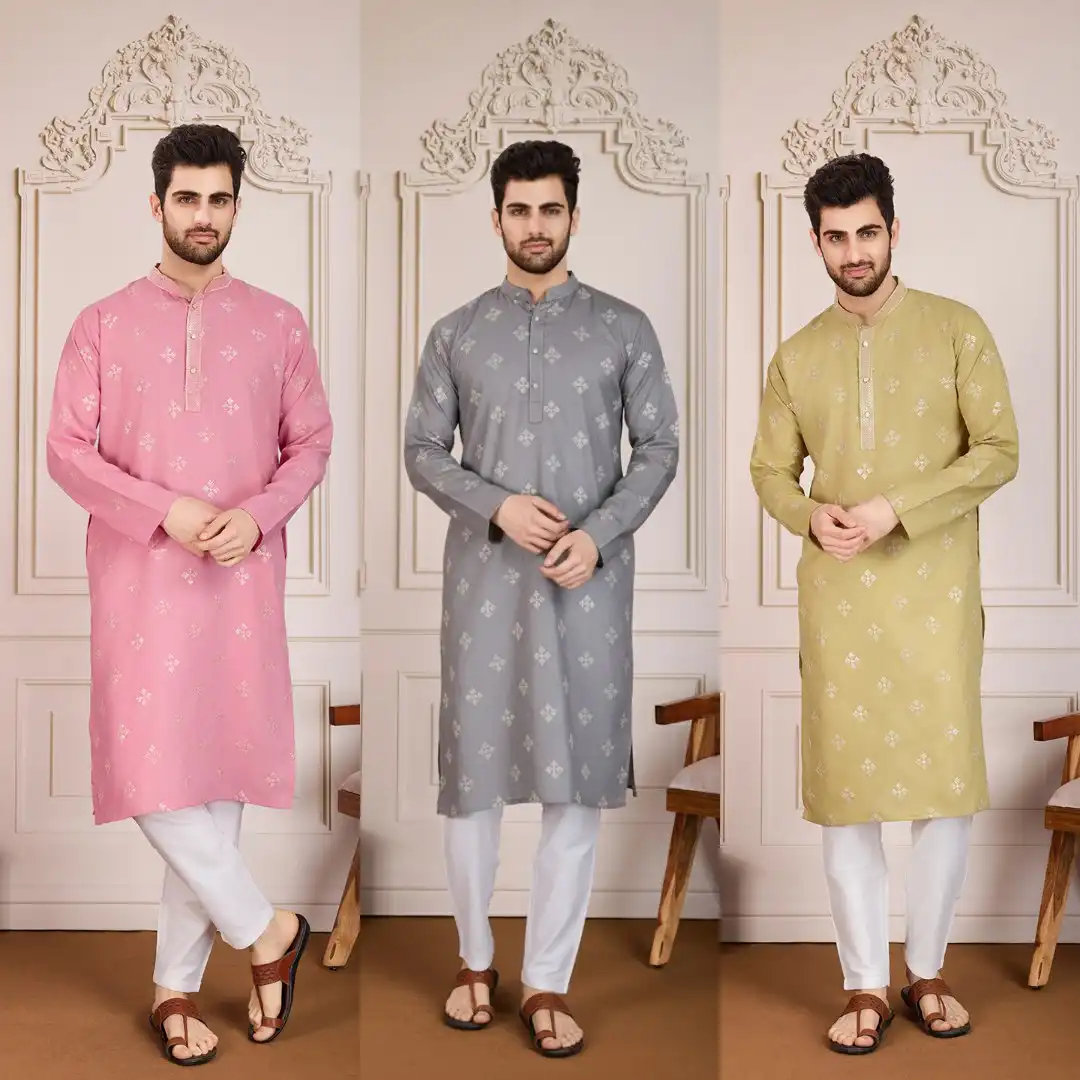 Kiara Pushpa 1 Cotton Embroidery Work Men’s Traditional Kurta Pajama For Wedding