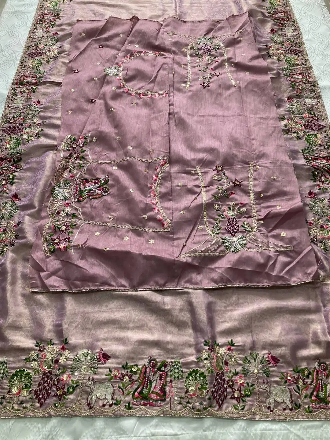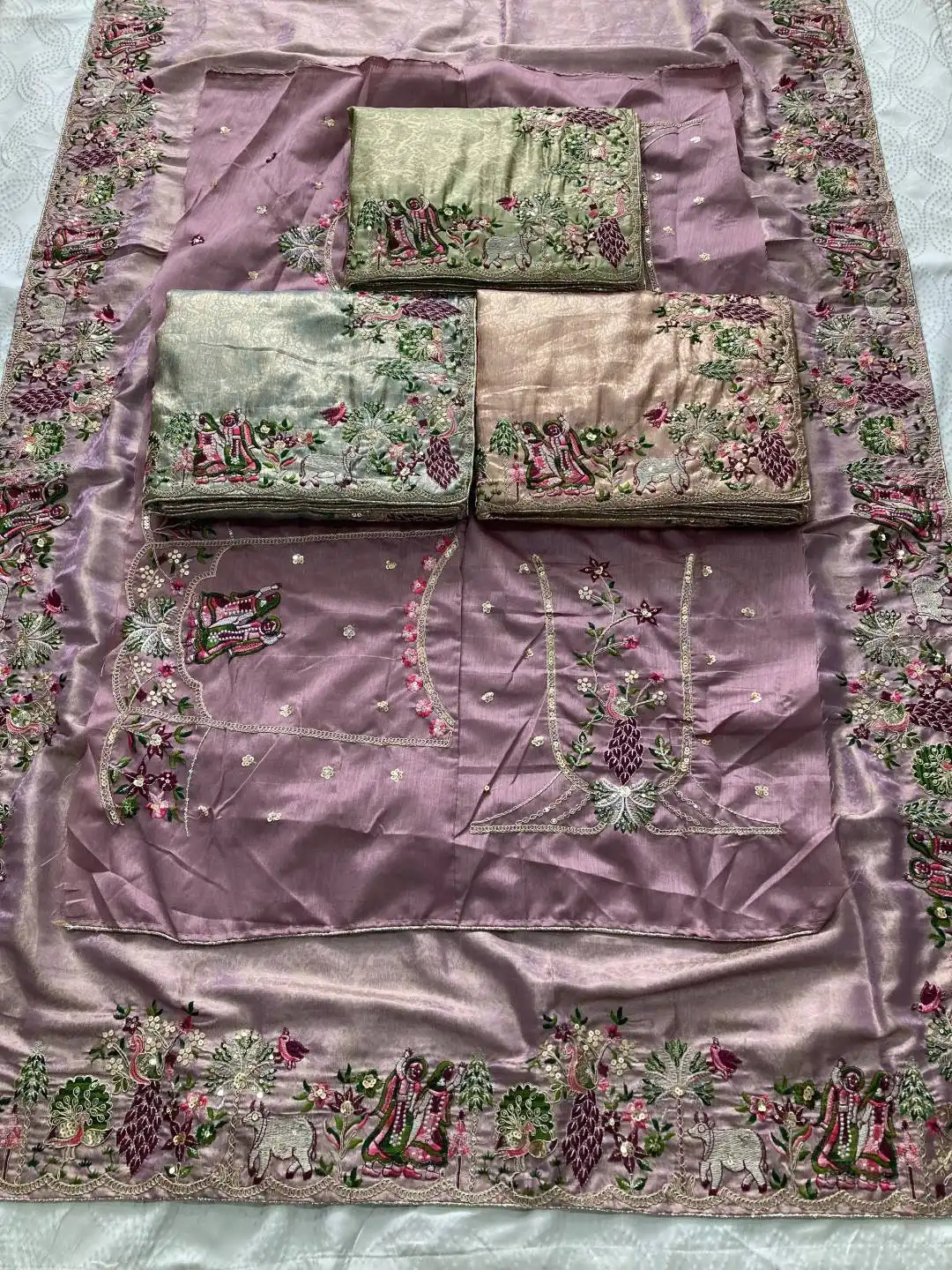 | Saree: | Soft Kanjiwarm Silk Work :- Beads Embroidery work lace border Cut :- 5.5 mtr |