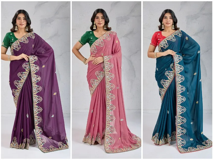 Kiara Star Georgette Silk Thread Sequins Work Sarees