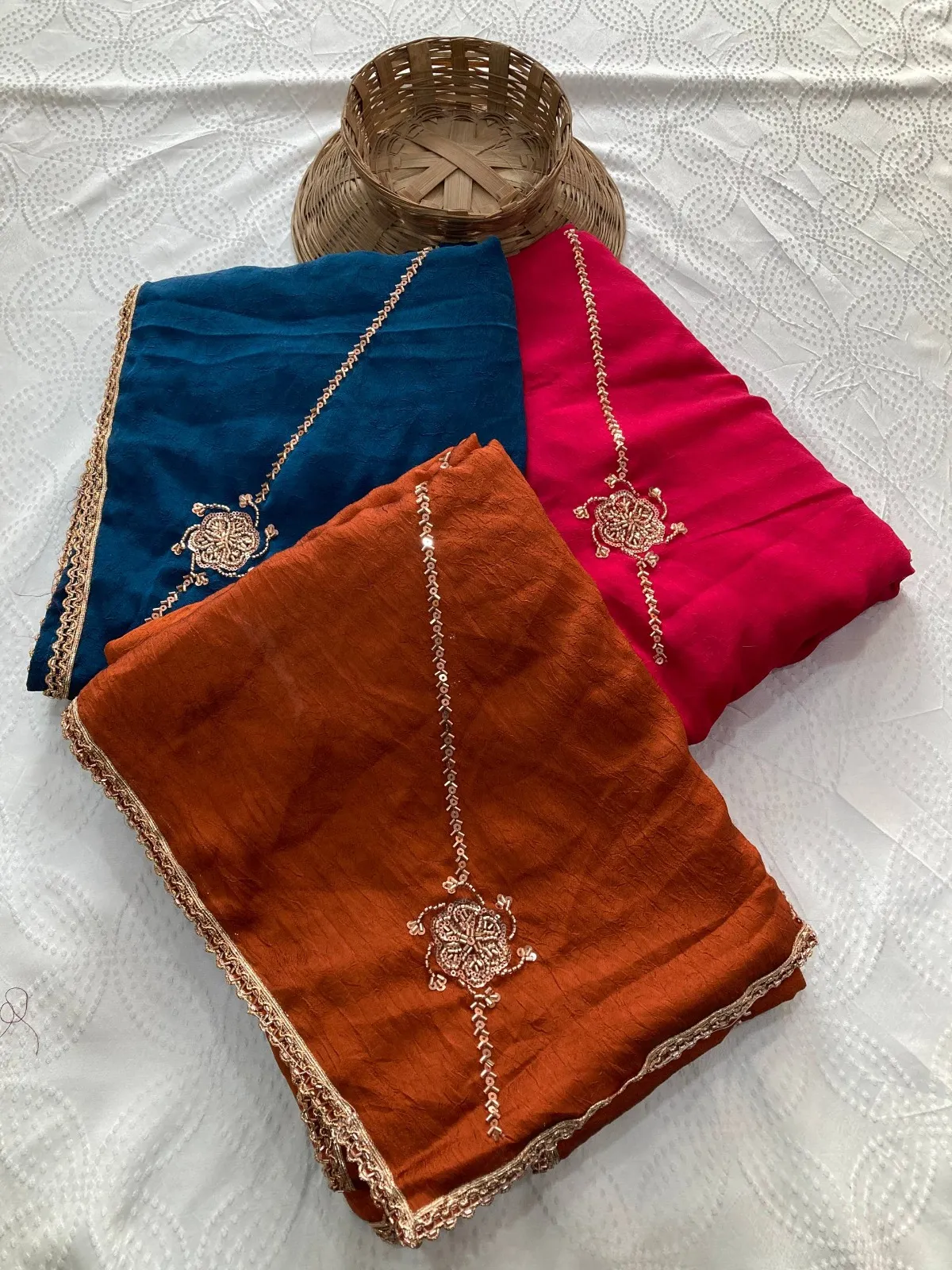 Kiara Yaaraa Crush Silk Beads Embroidery Work Sarees