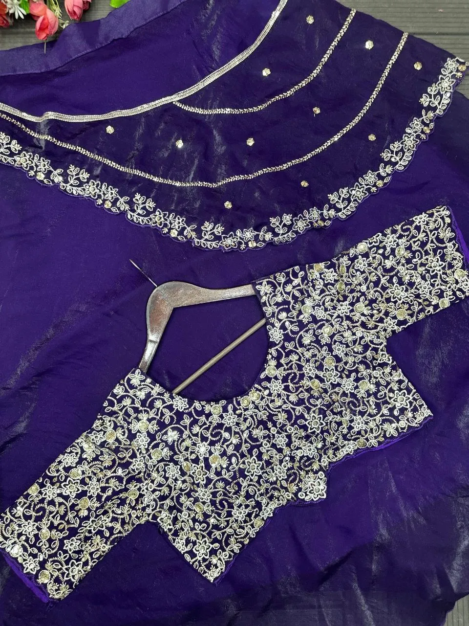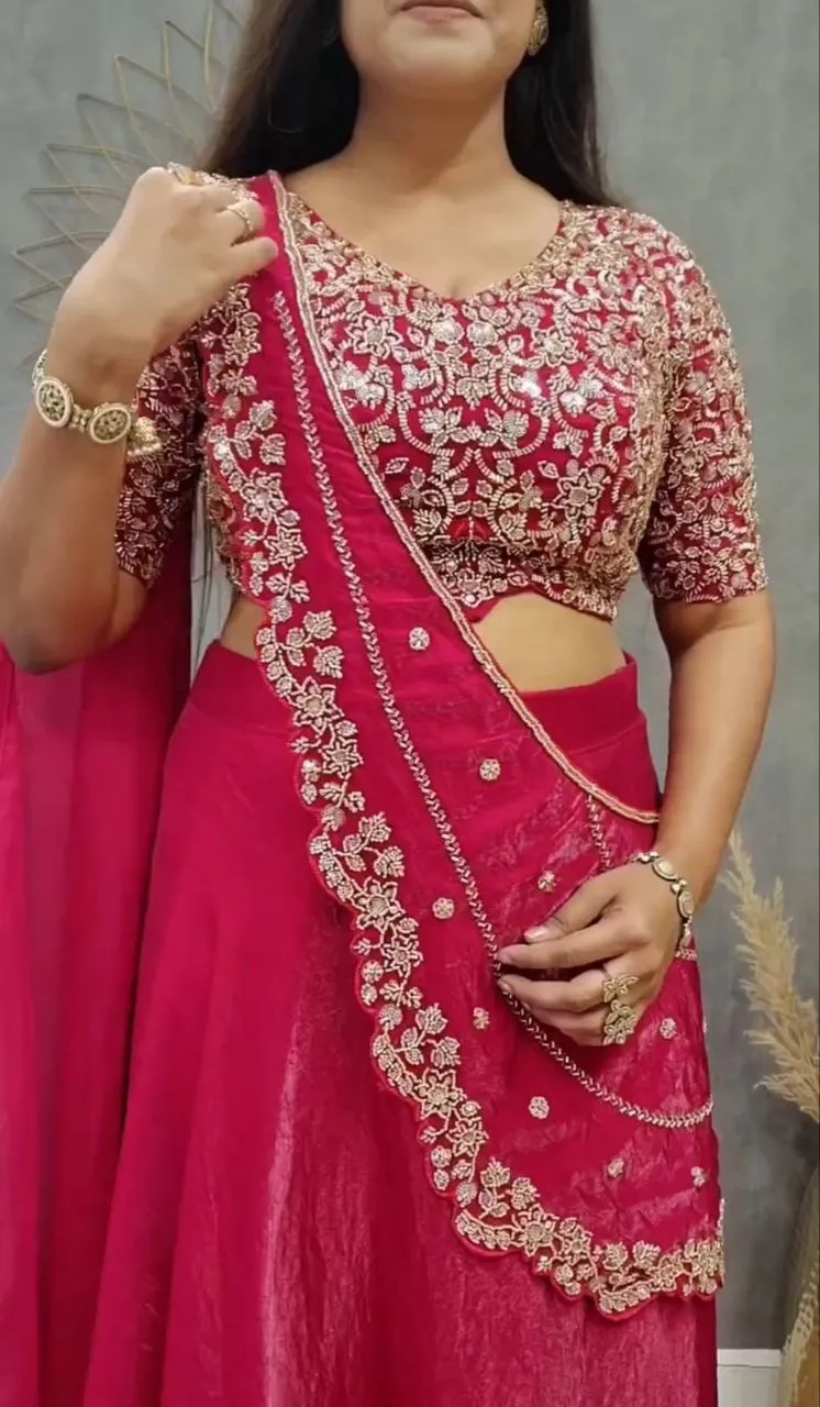 Blouse Fandy satin, Work- Hevey Embroidery Sequence Work, Inner- Crep, Size- free