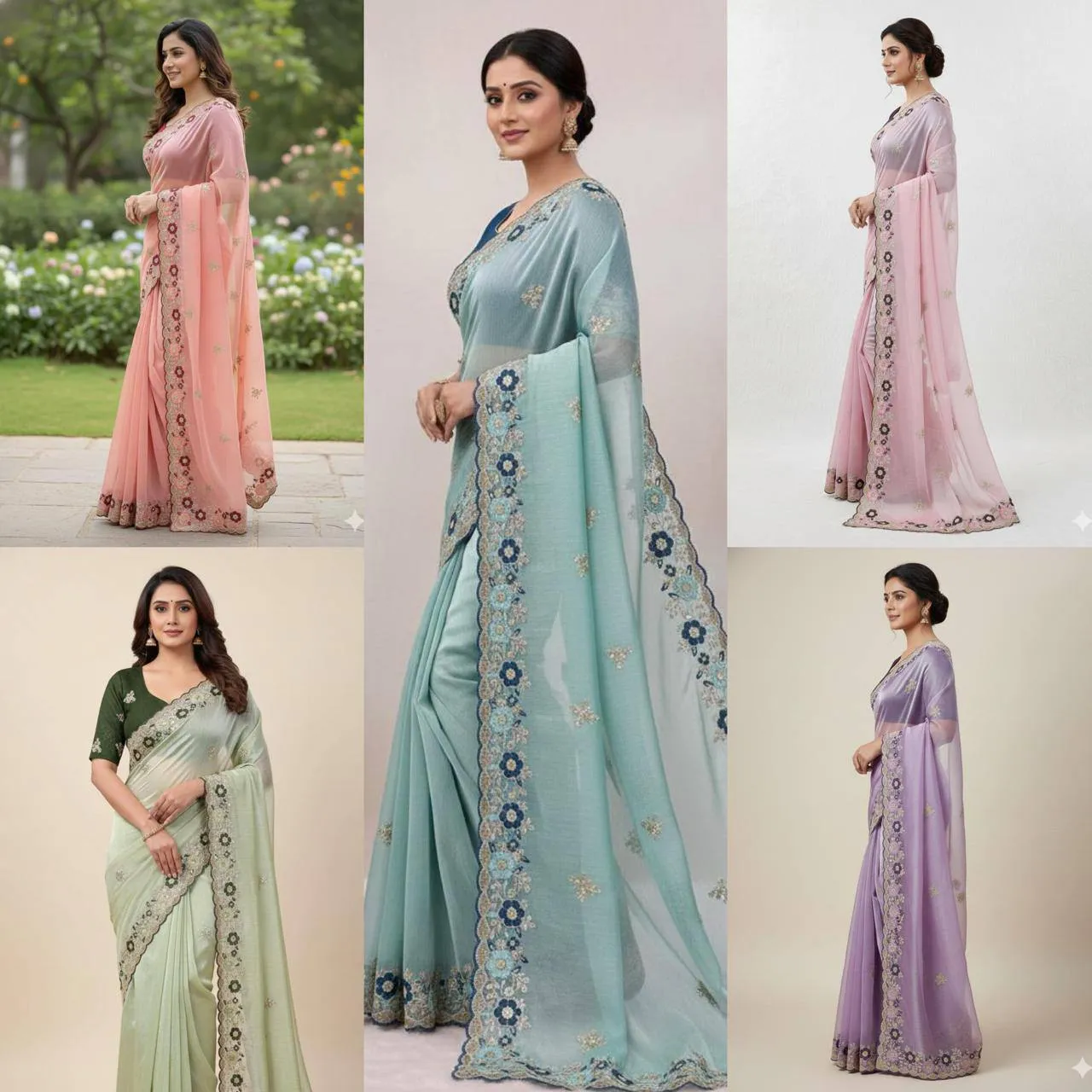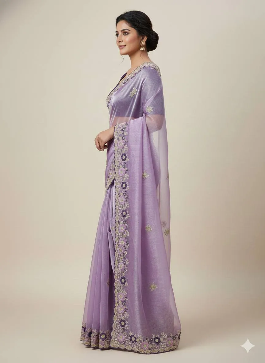 | Saree | Premium Jimmy choo chiffon with c pallu embroidery work and multi Thread work with arco cut work border, Length-5.50 MTR |