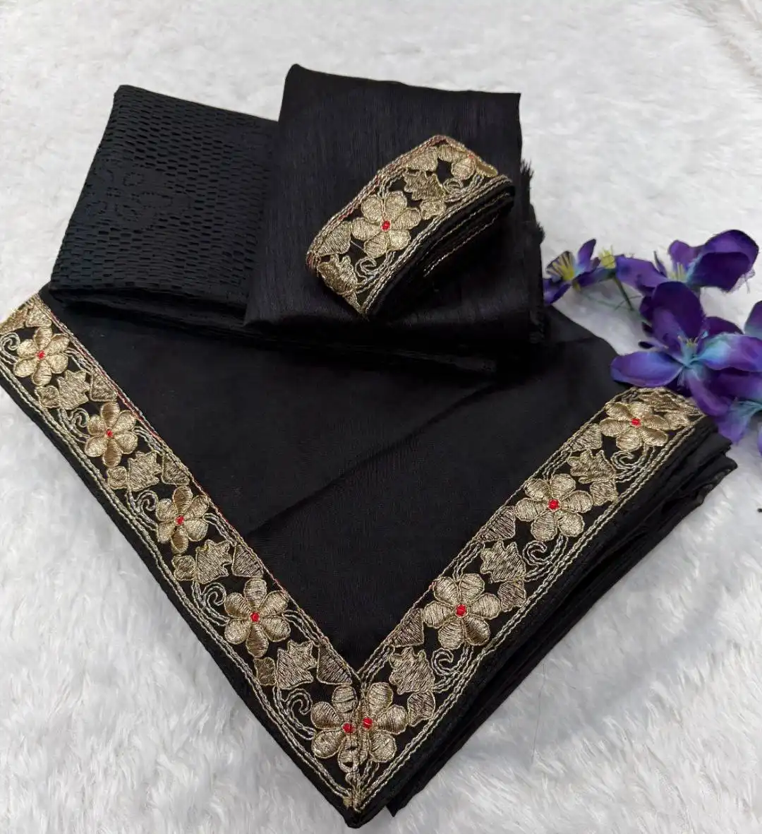 | Blouse: | Satin Banglory And Designer Net For Sleeve | Length:- 0.80 MTR | Banglory Silk+ 1 MTR net |