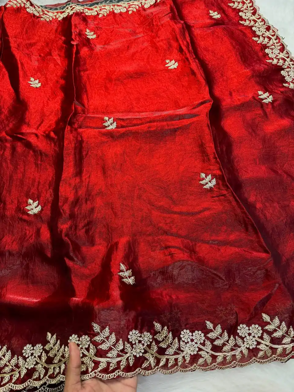 Saree: Premium Fandy satin with c pallu spring Dori embroidery work and all over sarees butta work with cutwork border | Length:-5.50 MTR