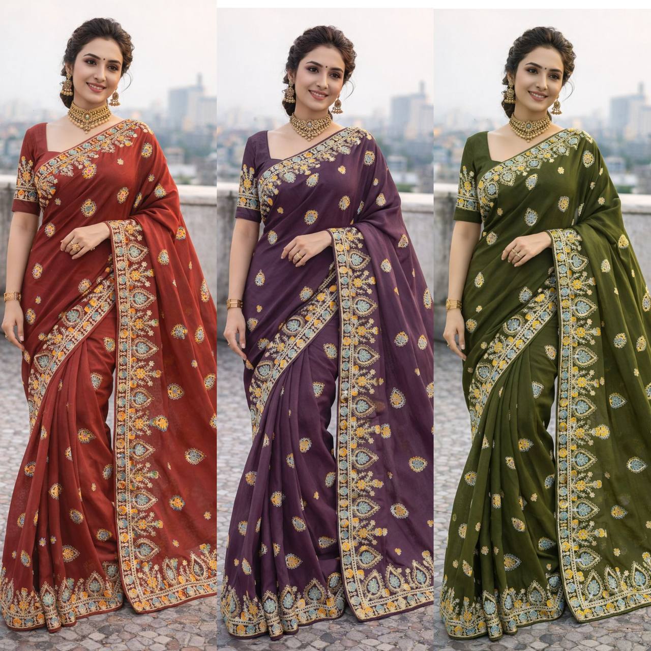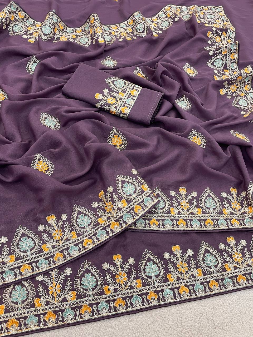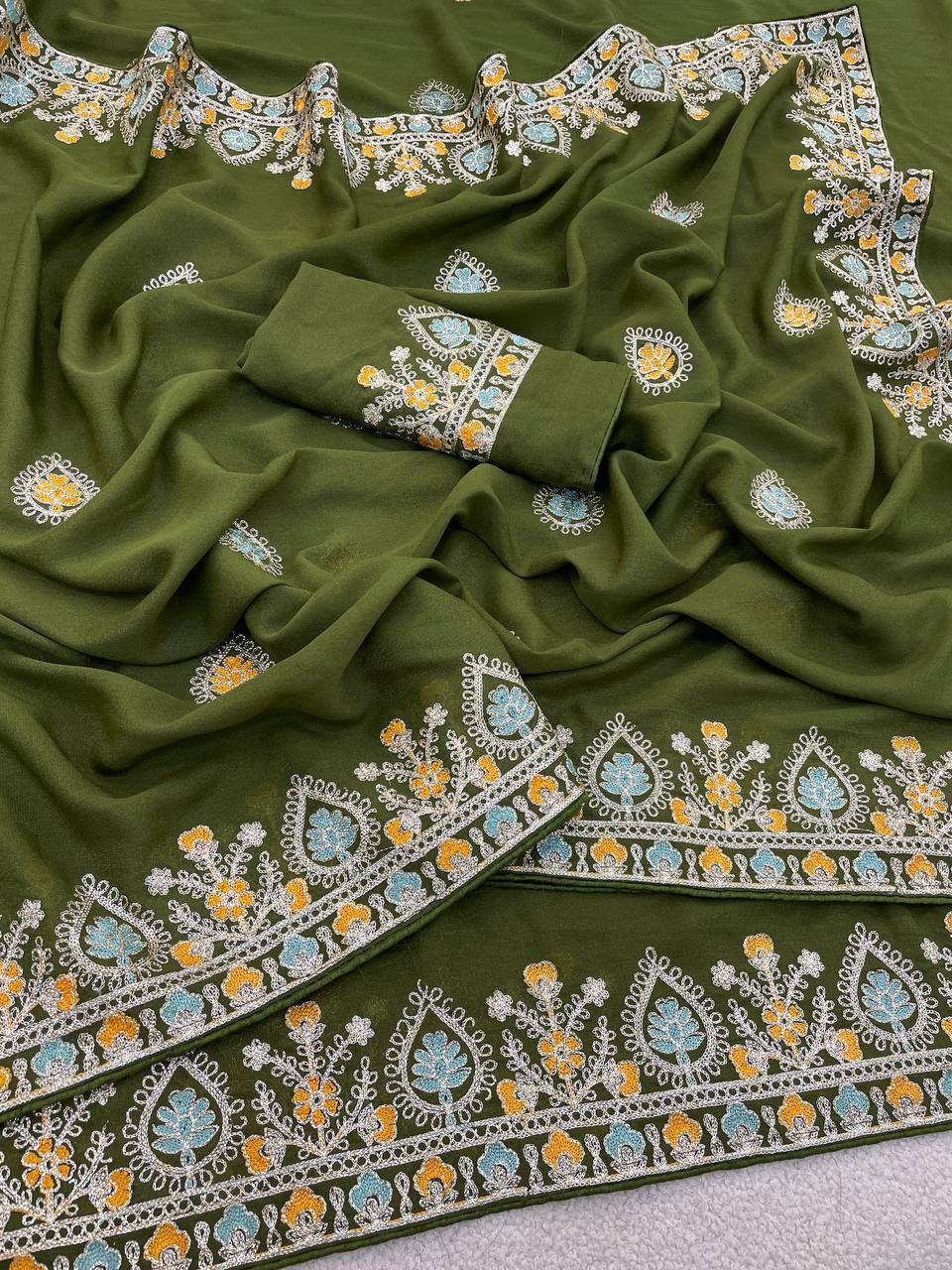 | Saree: | Pure soft star Georgette silk fabric with thread work embroidered with piping border |