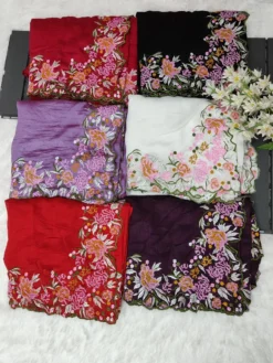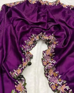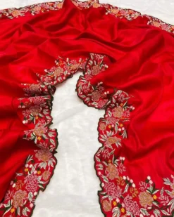 Saree: Heavy Vichitra silk fabric with viscose thread c-pallu embroidery work and arc cutting border work