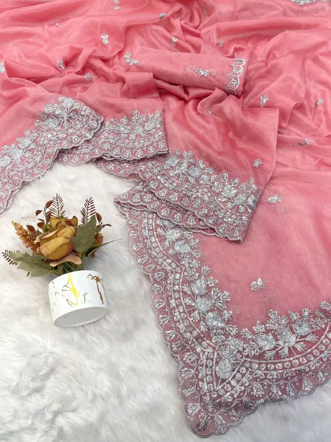 Saree: | Soft fabrics with embroidery c pallu work with cut work border | Length:-5.50 MTR |