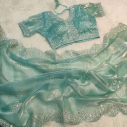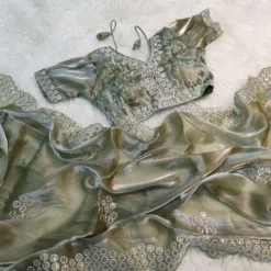 Saree: Pure soft zimmy choo silk saree with amazing embroidery 3 mm sequence nd multi work heavy border bd butti in all over saree with aarco