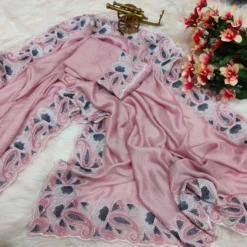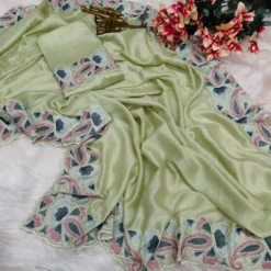 Saree: Soft vichitra silk with multi thread work with arc cutting border