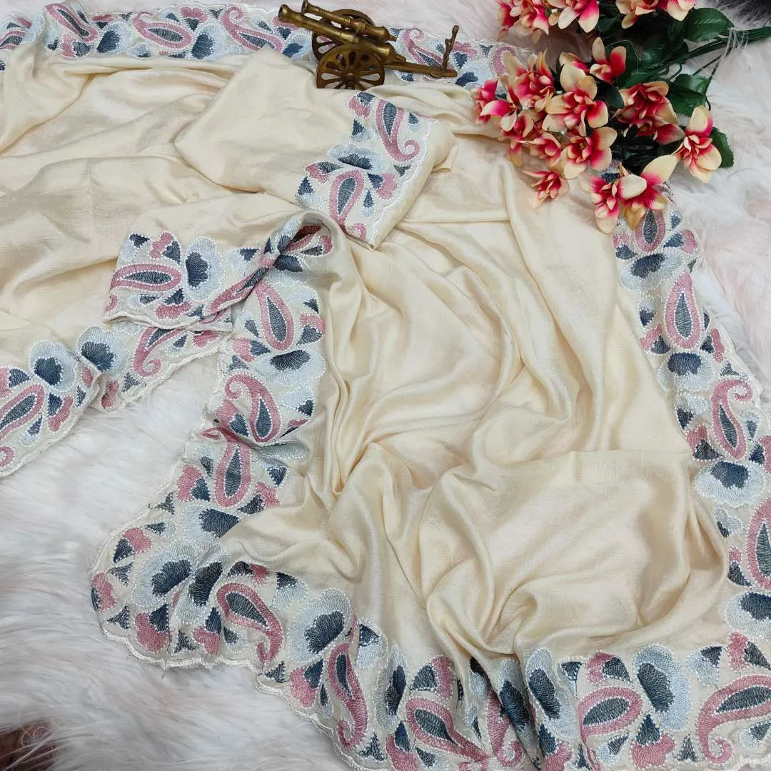 Saree: Soft vichitra silk with multi thread work with arc cutting border