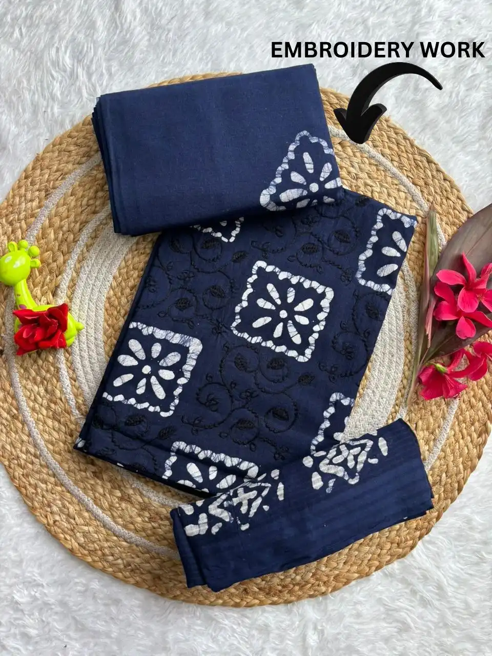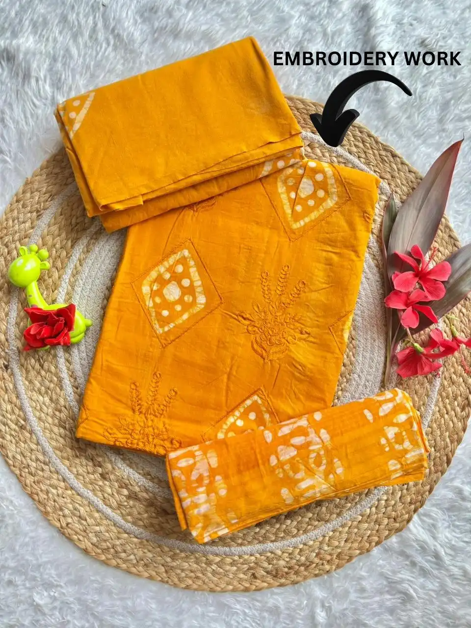 Top: Pure Cotton, Print- Batik print, Work- Full Embroidery Work on Printed Base, 2.25 meters(Approx)