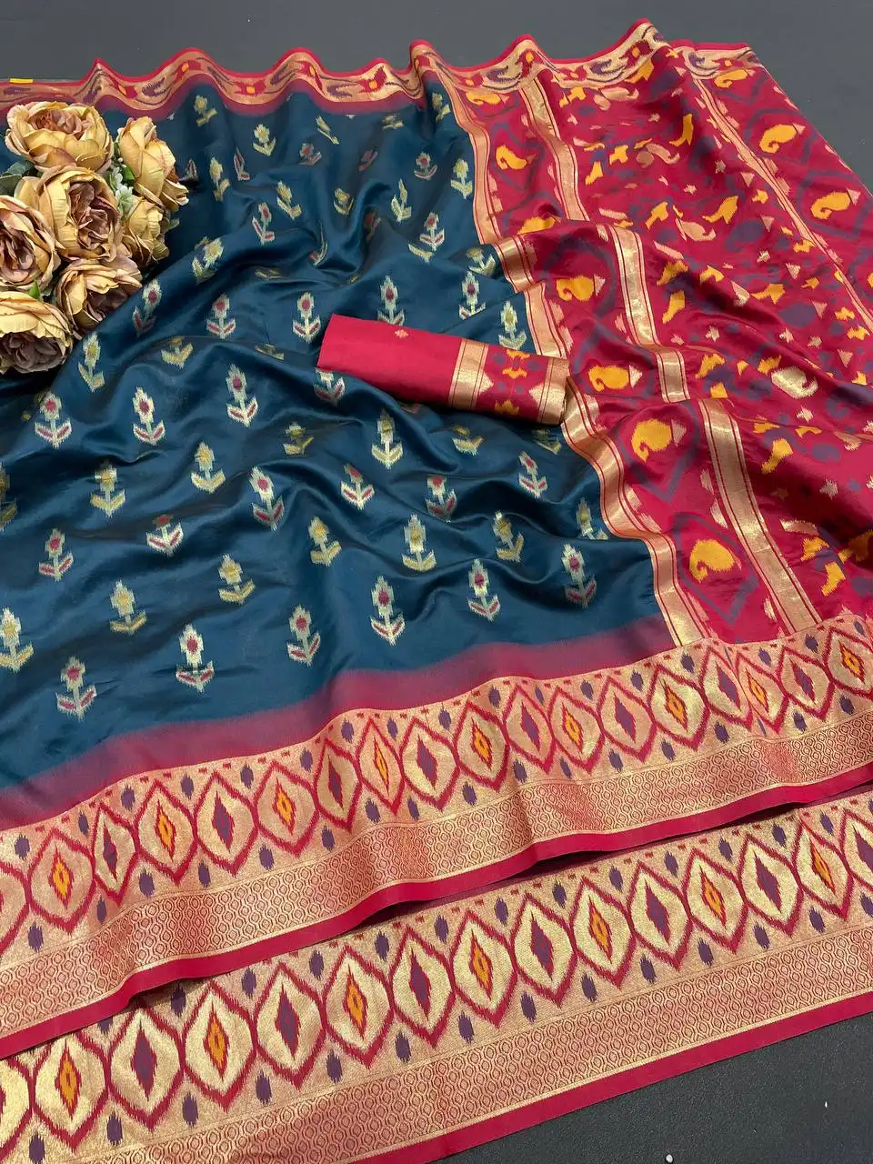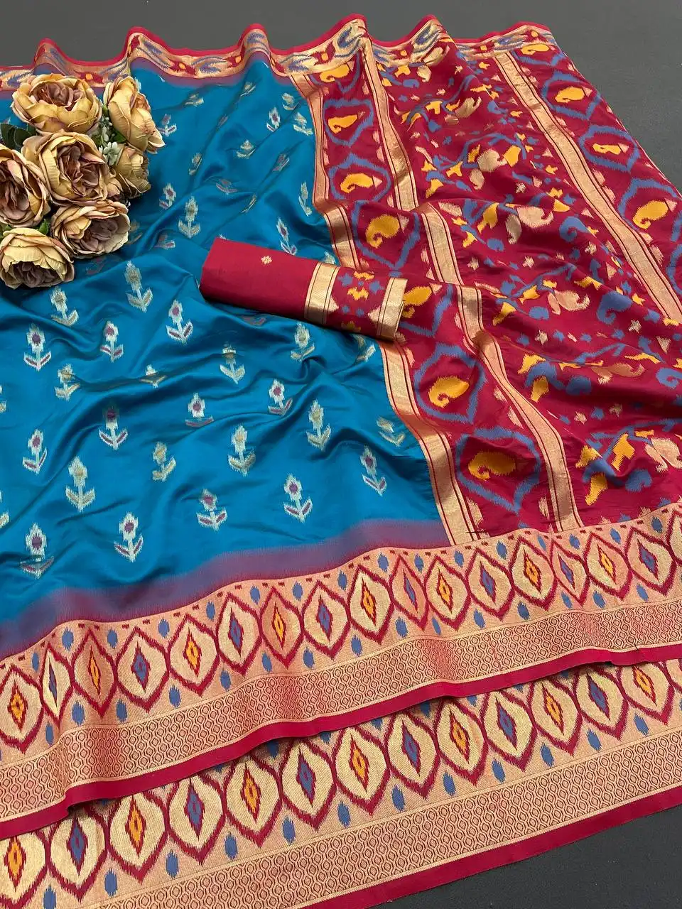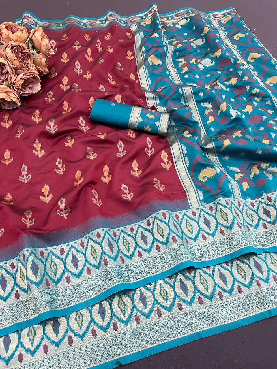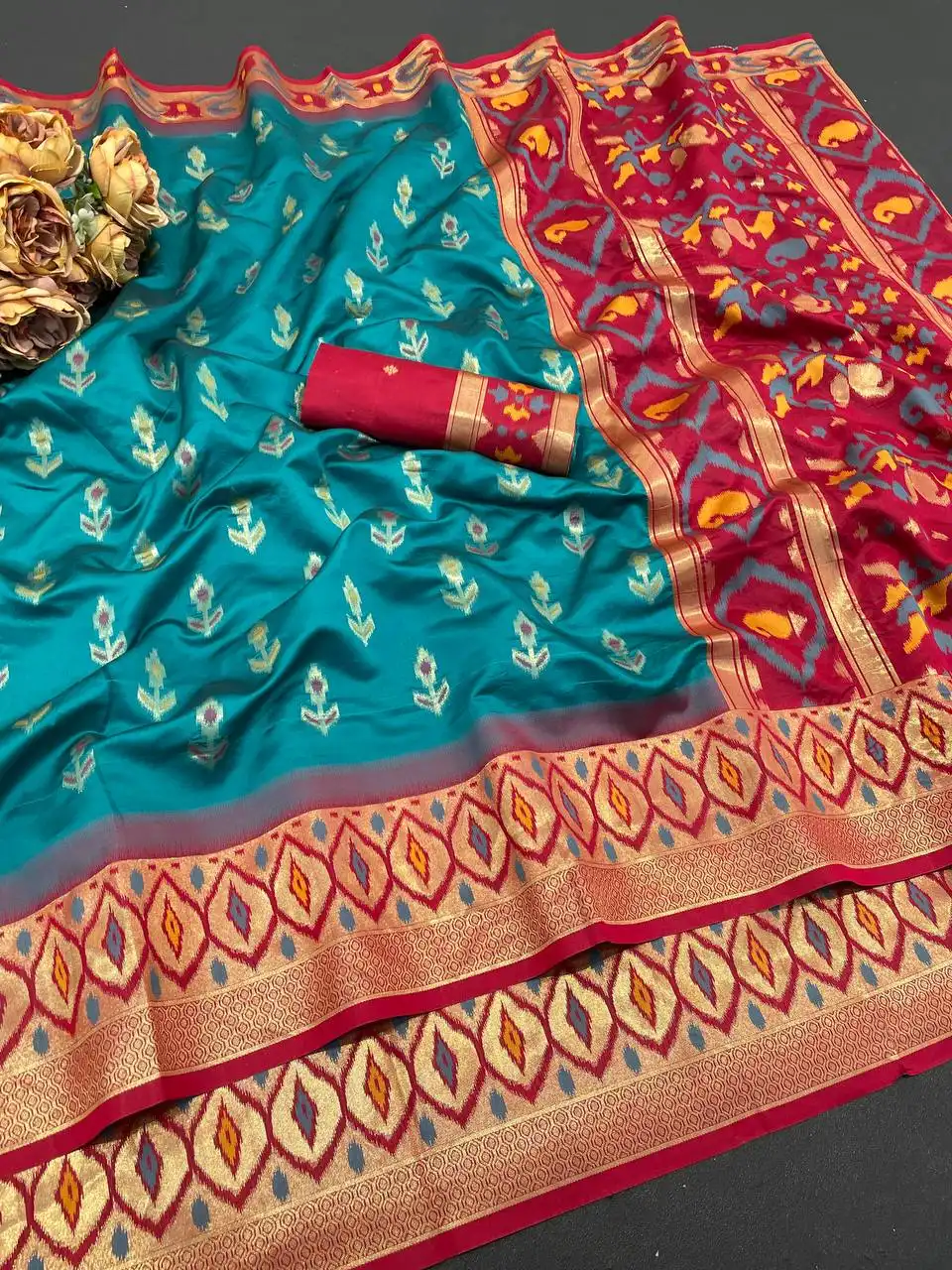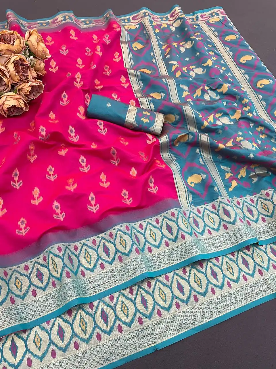 Laxmi 1054 Ikkat Silk Flowers And Mina Design With Zari Weaving Saree