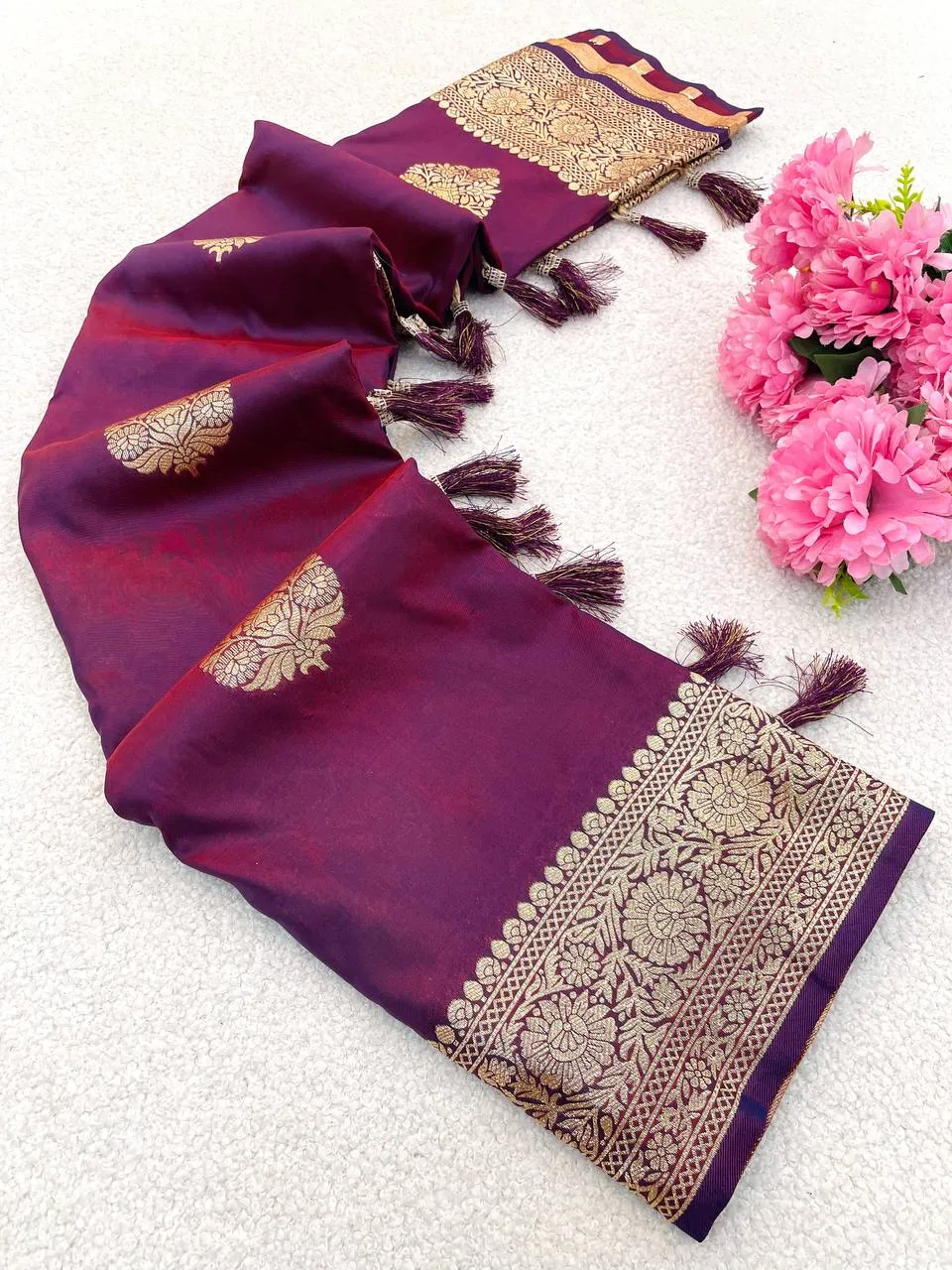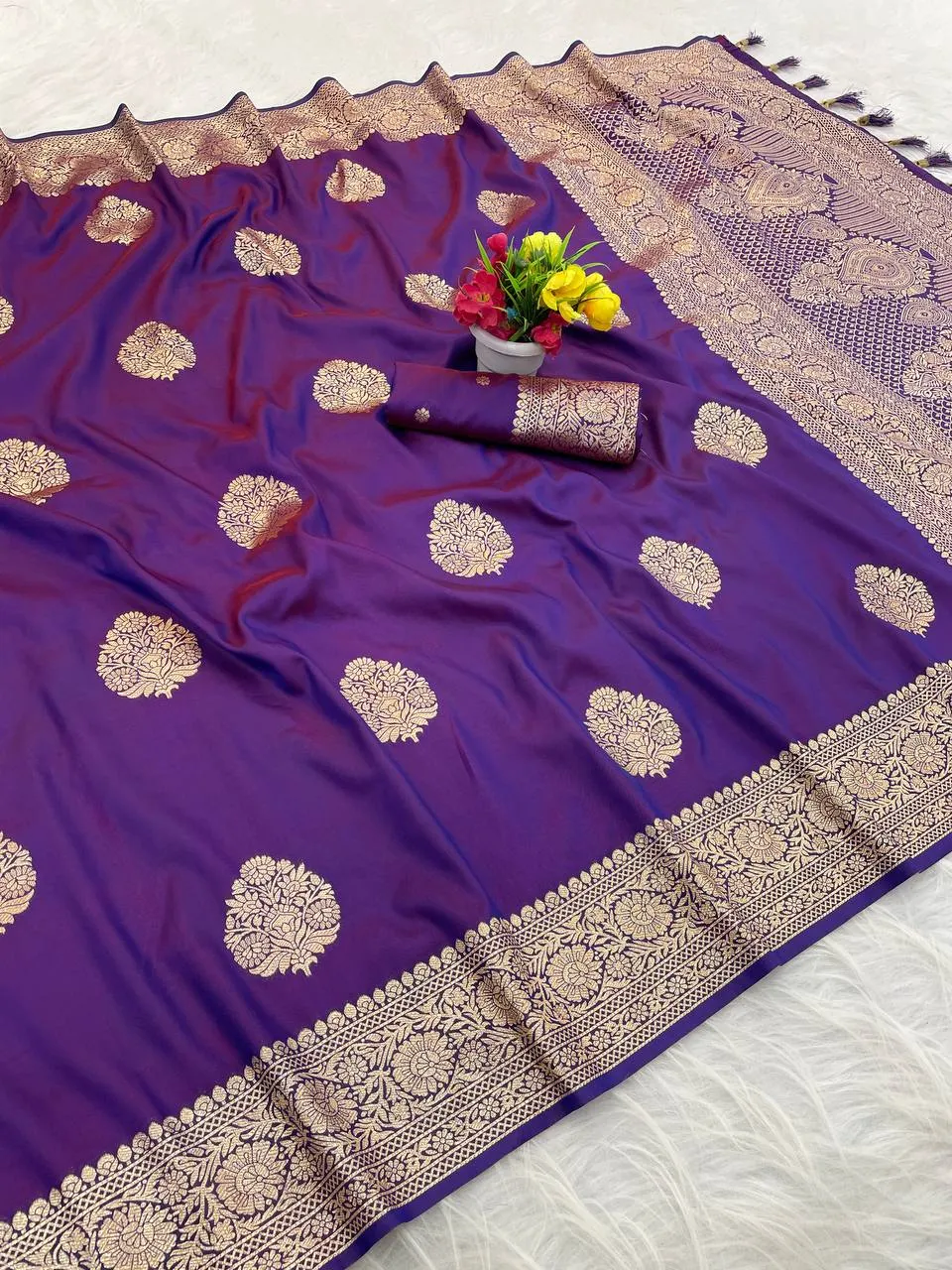 | Saree | Banarasi JARI Soft Silk, Golden zari Buti weaves all over the body, rich zari woven pallu, Length- 5.5 Meter |