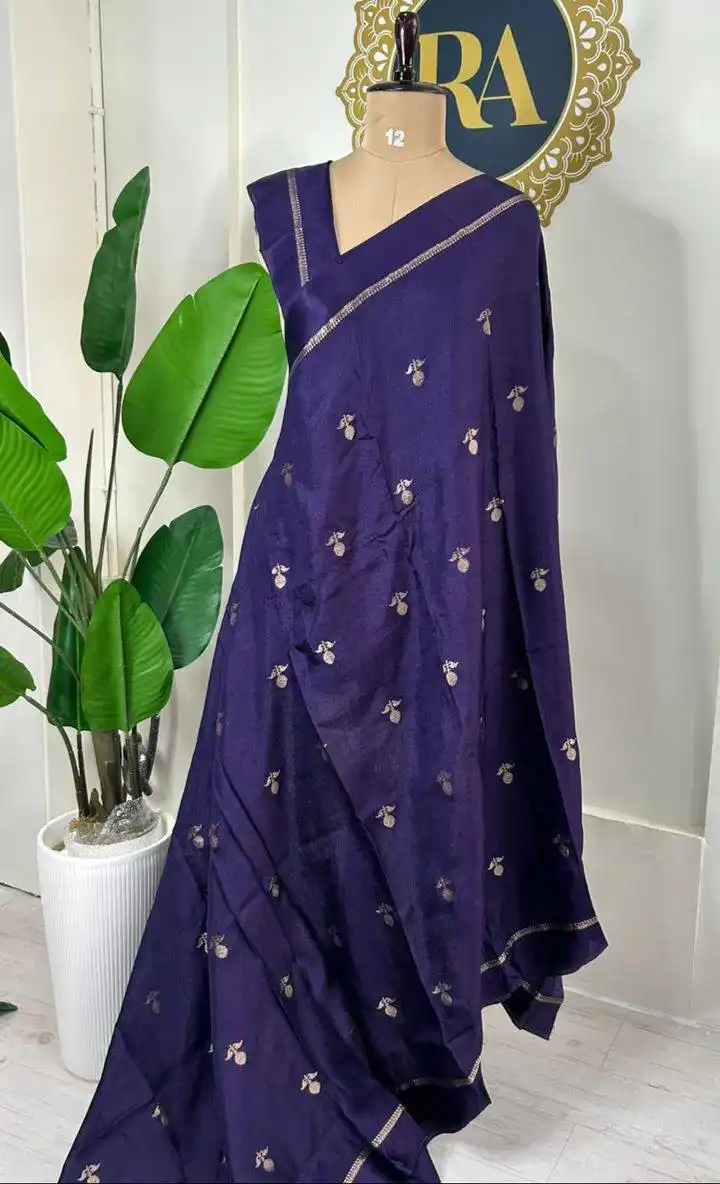 | Saree: | Pure soft Viscose Khadi silk fabric with satin border both side jacquard leaf figure design all over |