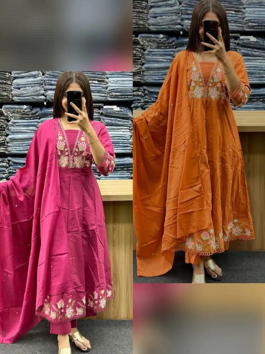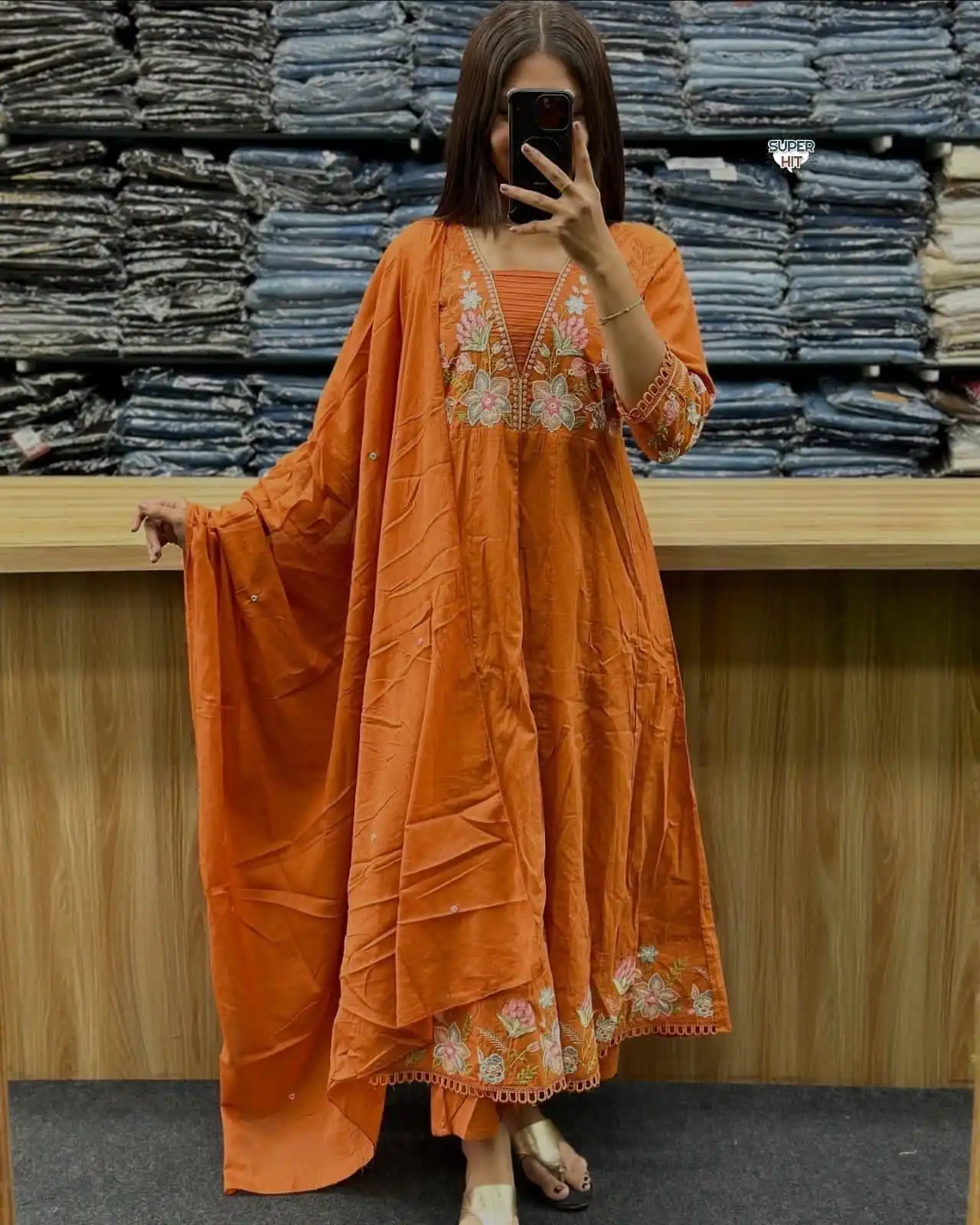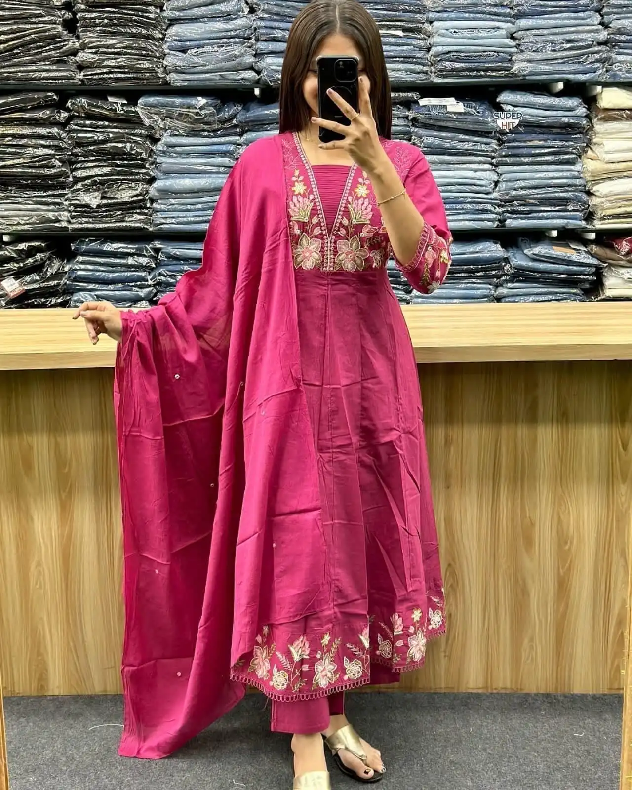 Laxmy Cotton 3piece Anarkali Kurti Set With Embroidery Work