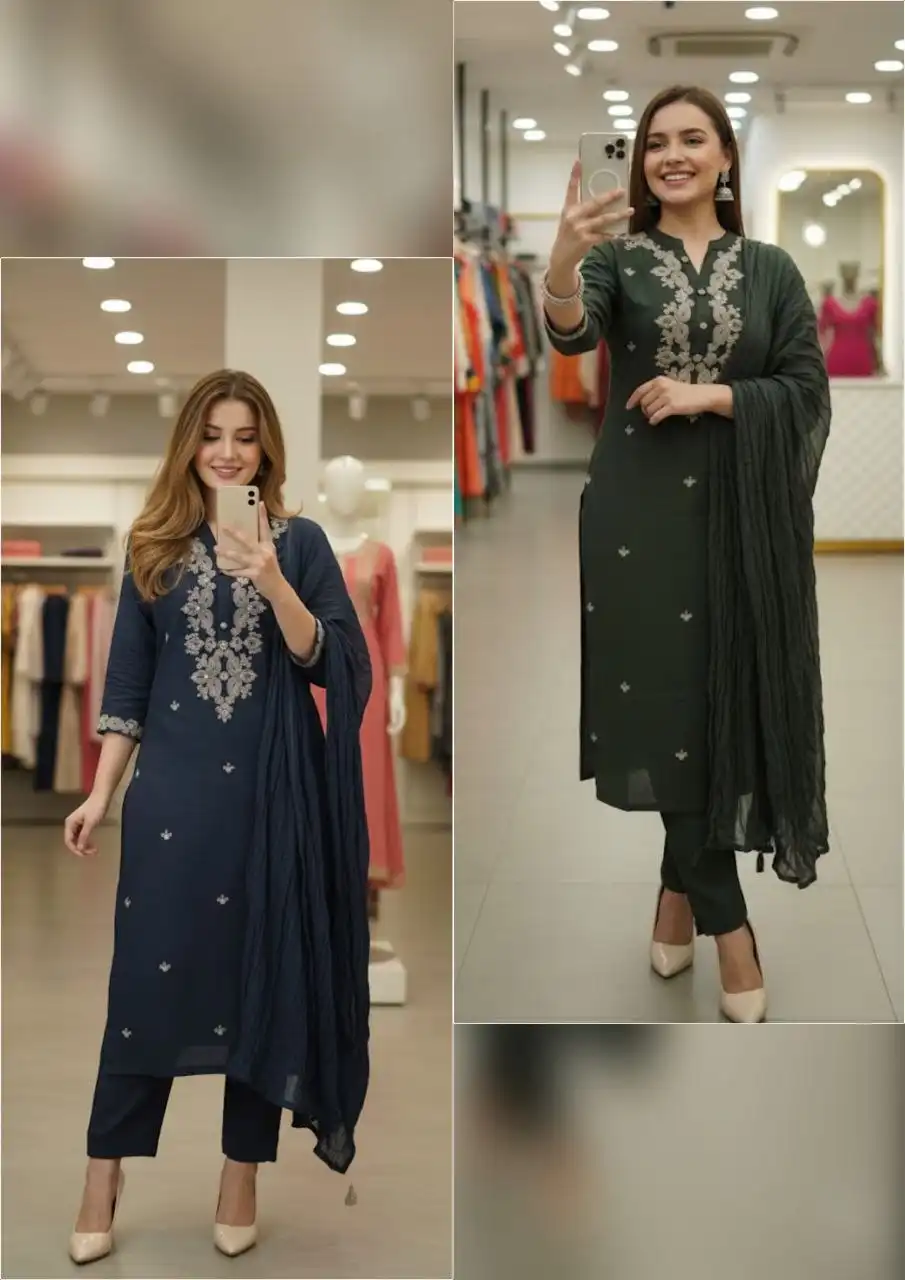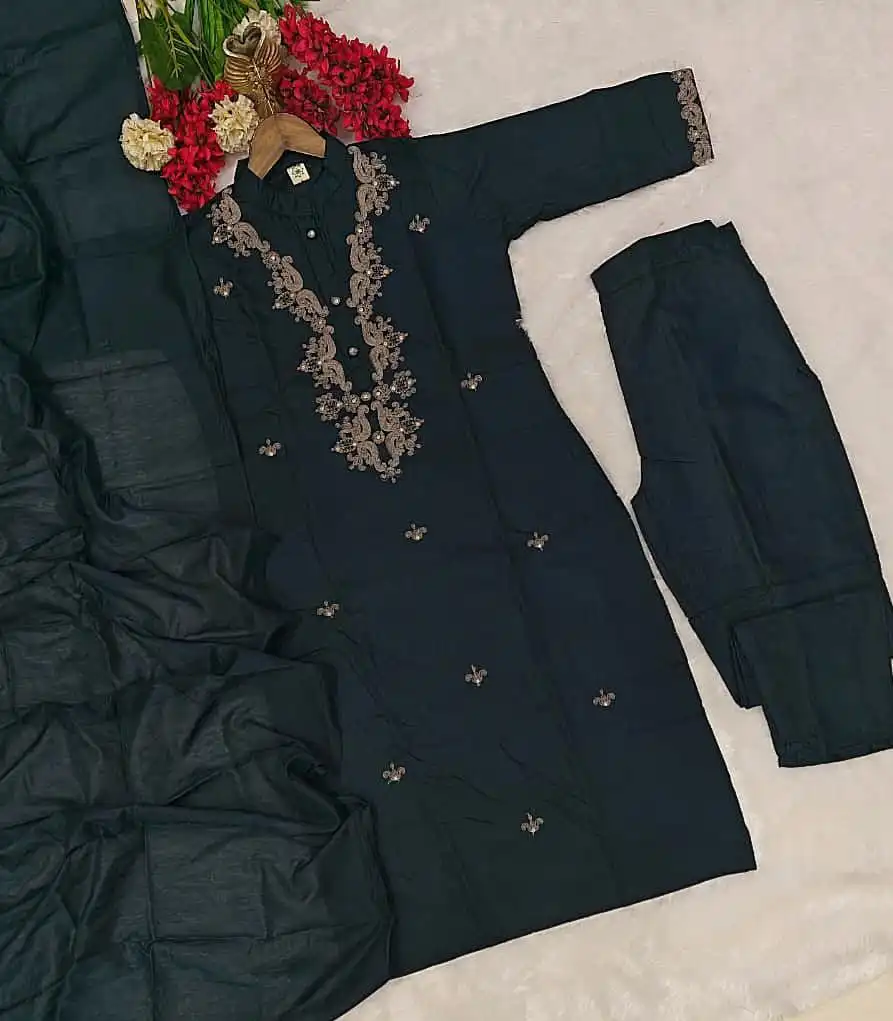 | Top: | Primium Rayon Slub Length: 44+ Work: Embroidery Coding Work Neck :- Mandarin Collar Neck |