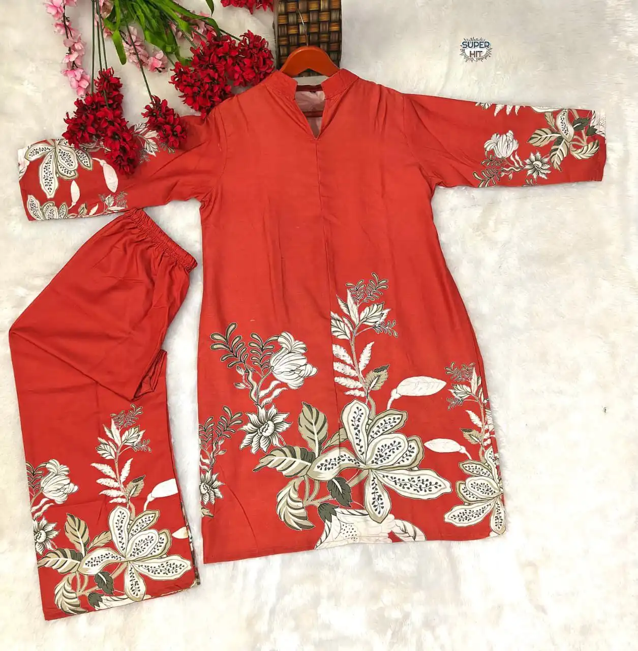 | Top: | Heavy Rayon Slub | Work:- Printed | length : 36+ | Seleeves: 3/4 seleeve |