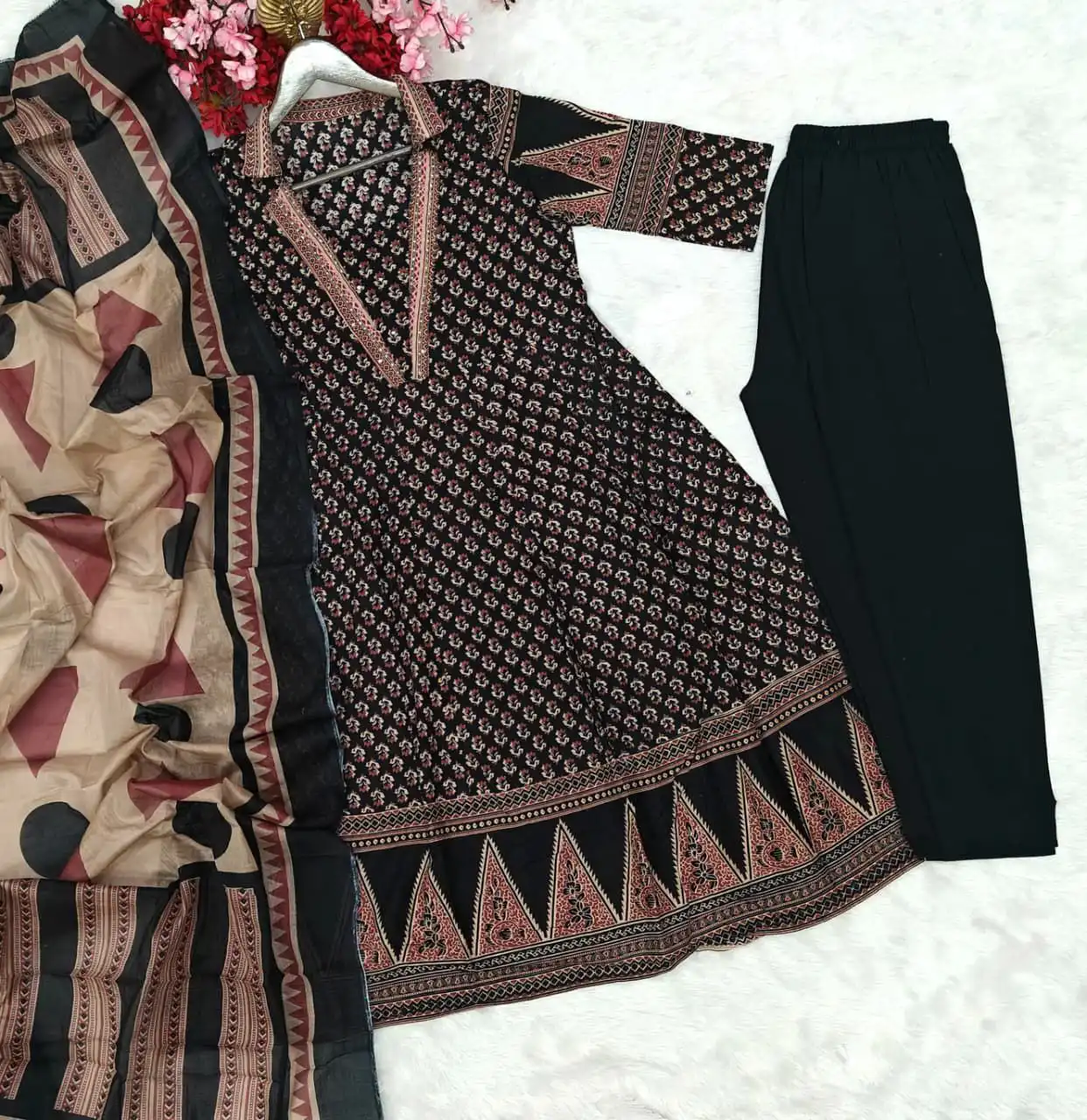 Top: Premium Cotton | Sleeve Type: 3/4th sleeves | Pattern: Sequence Embroidery work | length – 45-46 inches | Sleeve Type: 3/4th sleeves