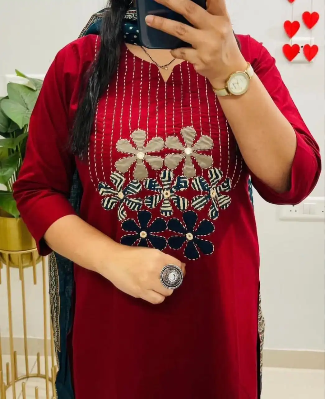 | Top: | Premium Cotton | Work- Embroidery Work | length – 45 inches |