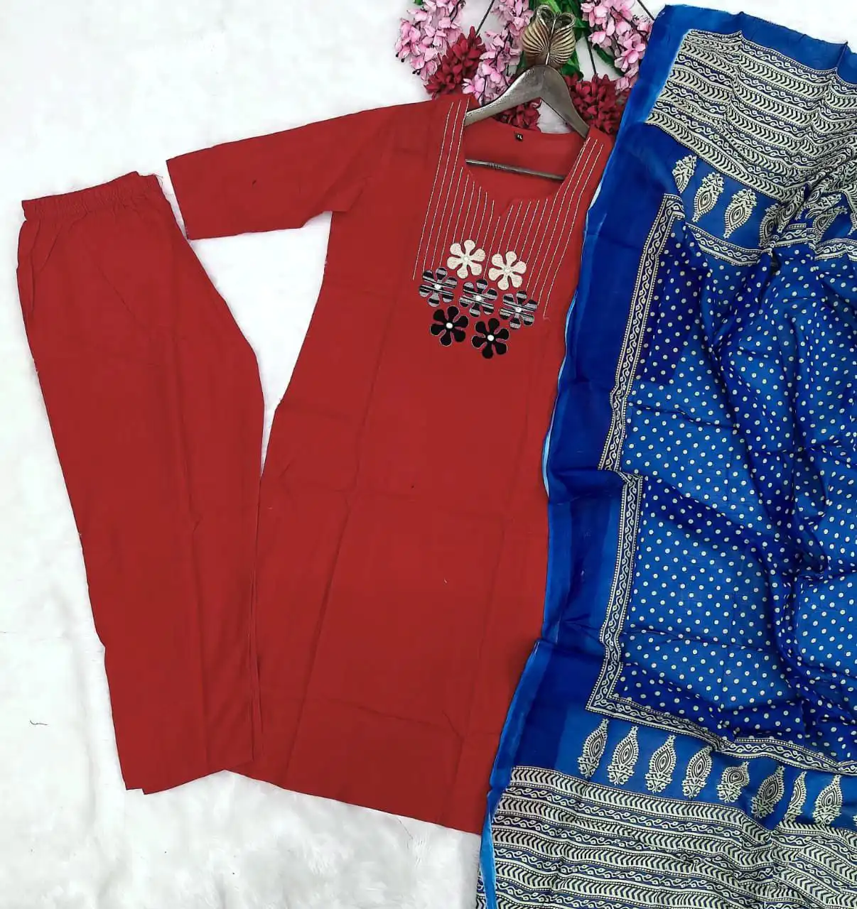 Laxmy Vol 57 Cotton Embroidery Kurta Pant Dupatta Set for Women Collection |