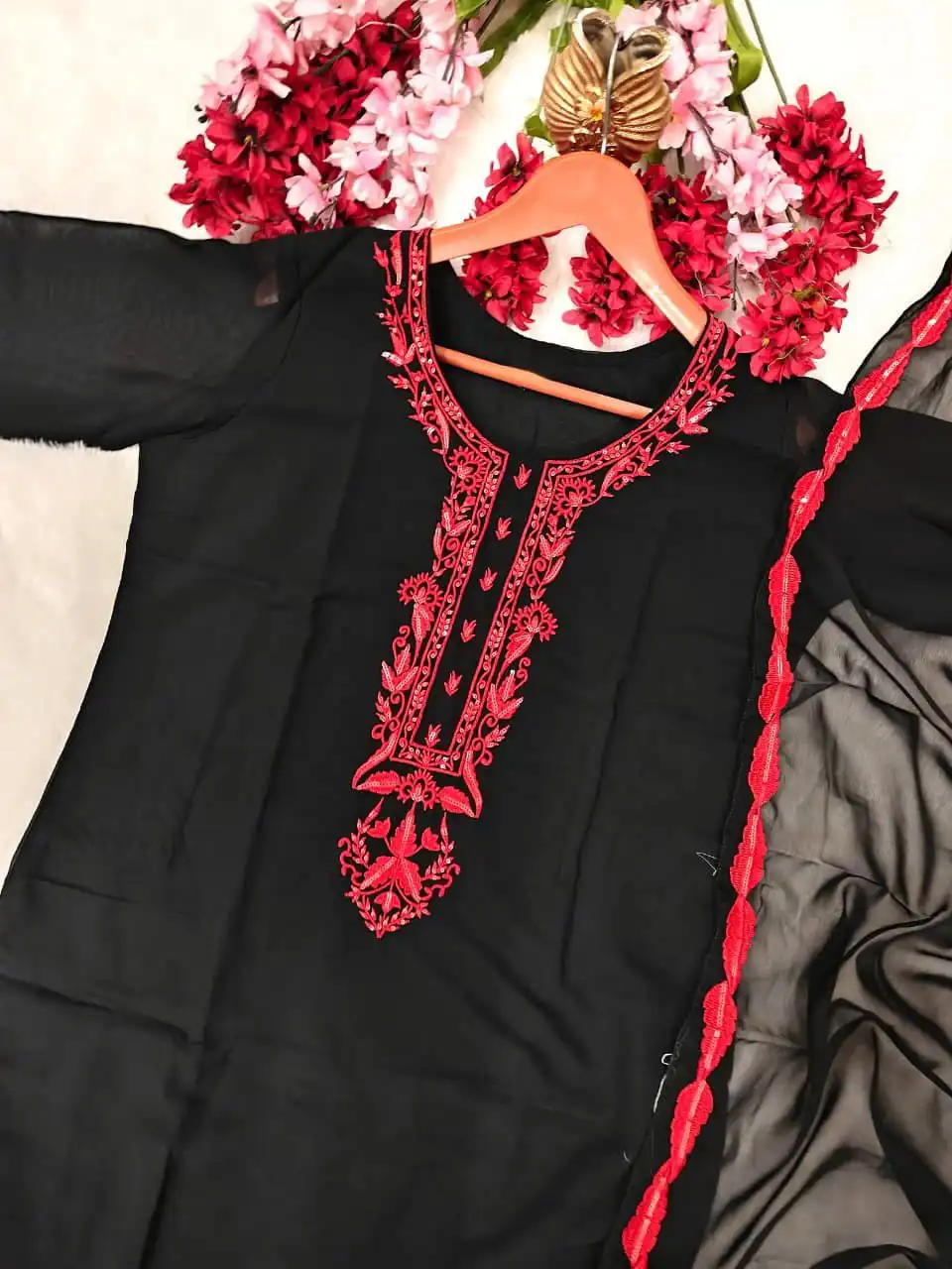 Laxmy Vol 61 Georgette Embroidery Kurti Pant With Dupatta Wholesale Online |