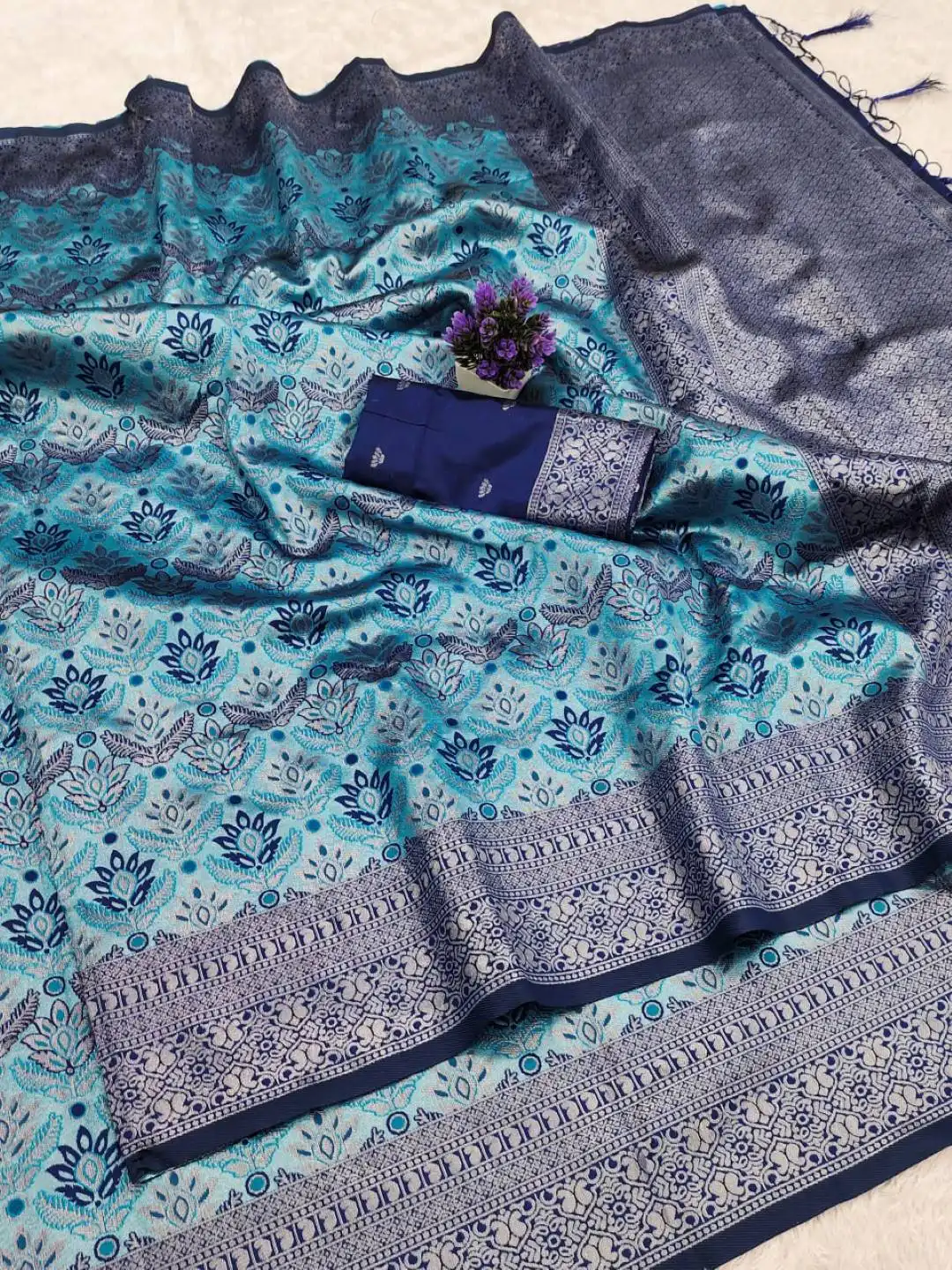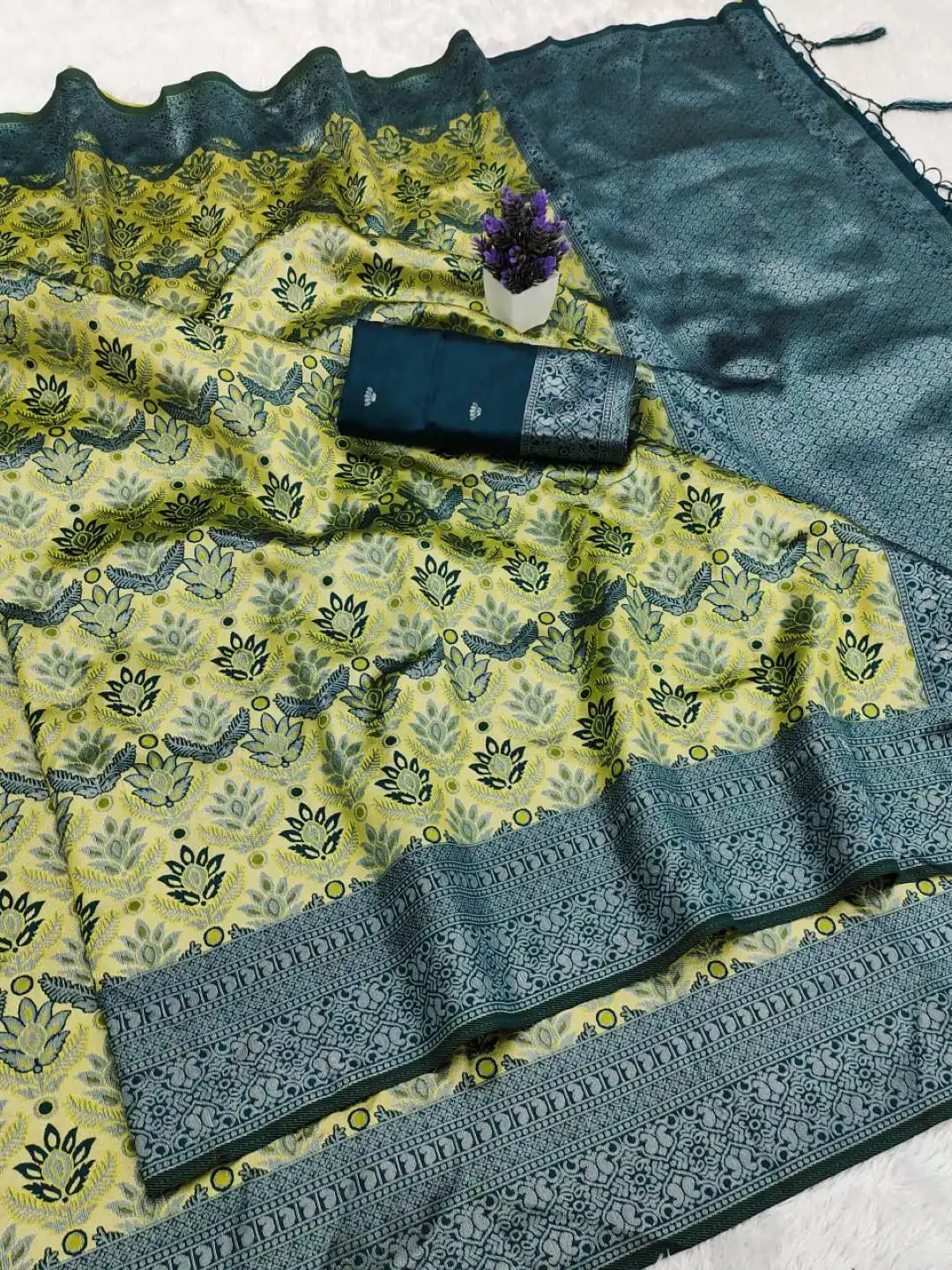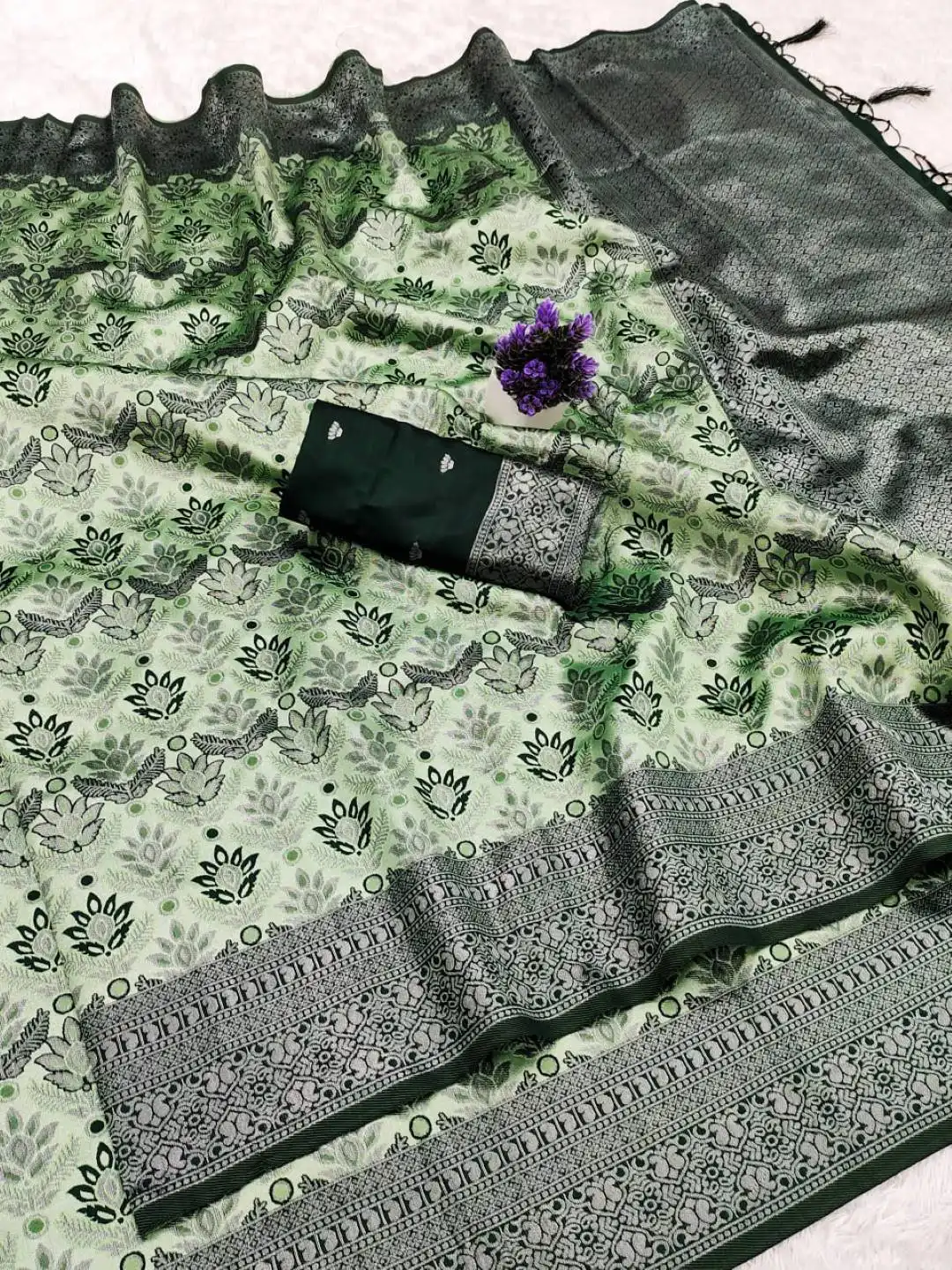 LFK 9072 Banarasi Soft Silk Traditional Saree with Zari Motifs & Jacquard Blouse