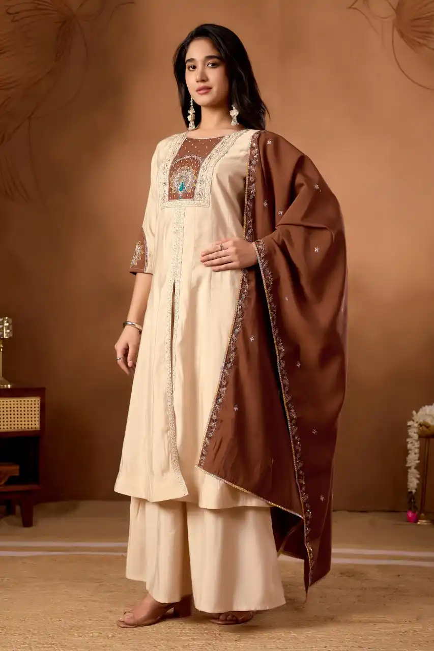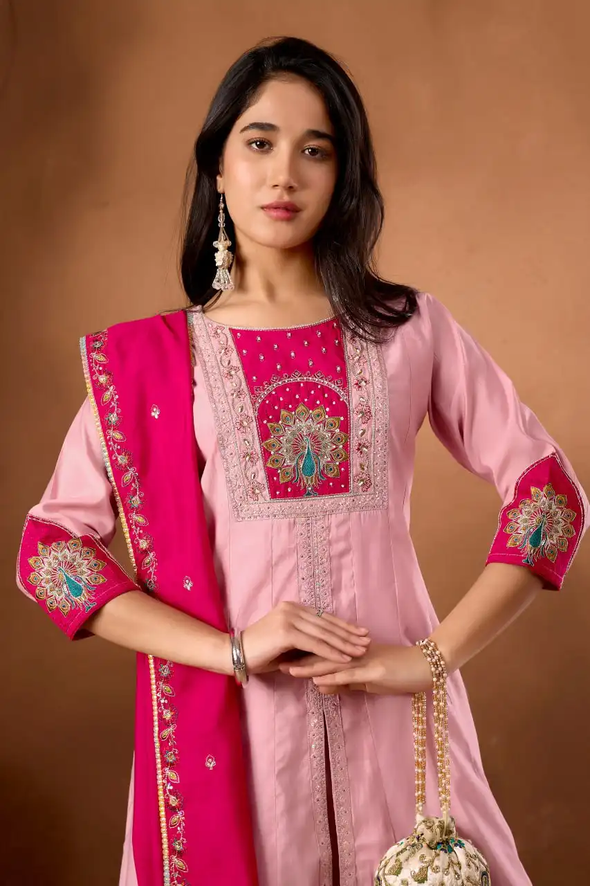 | Dupatta: | Roman Silk Work :- Heavy Embroidery Work With Border Less Work. Length :- 2.20 Meter |