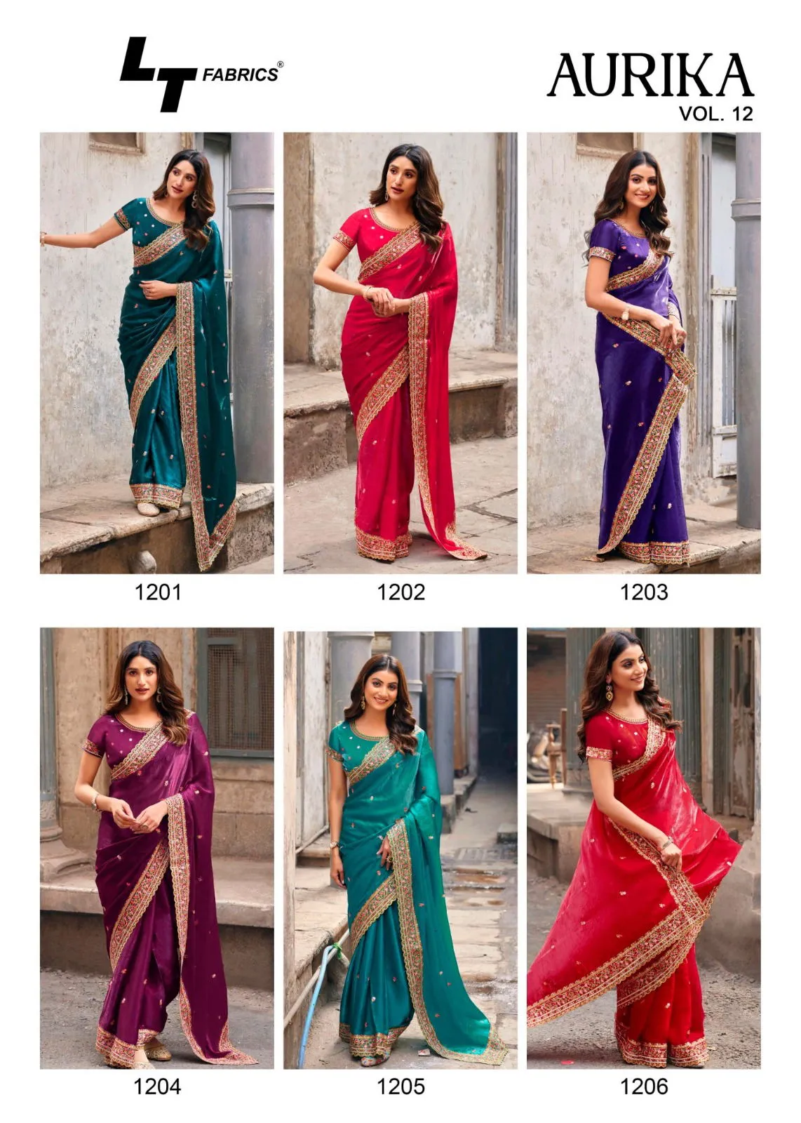 Lt Aurika Vol 12 Silk with Embroidery Work Party Wear Saree Collection Sarees