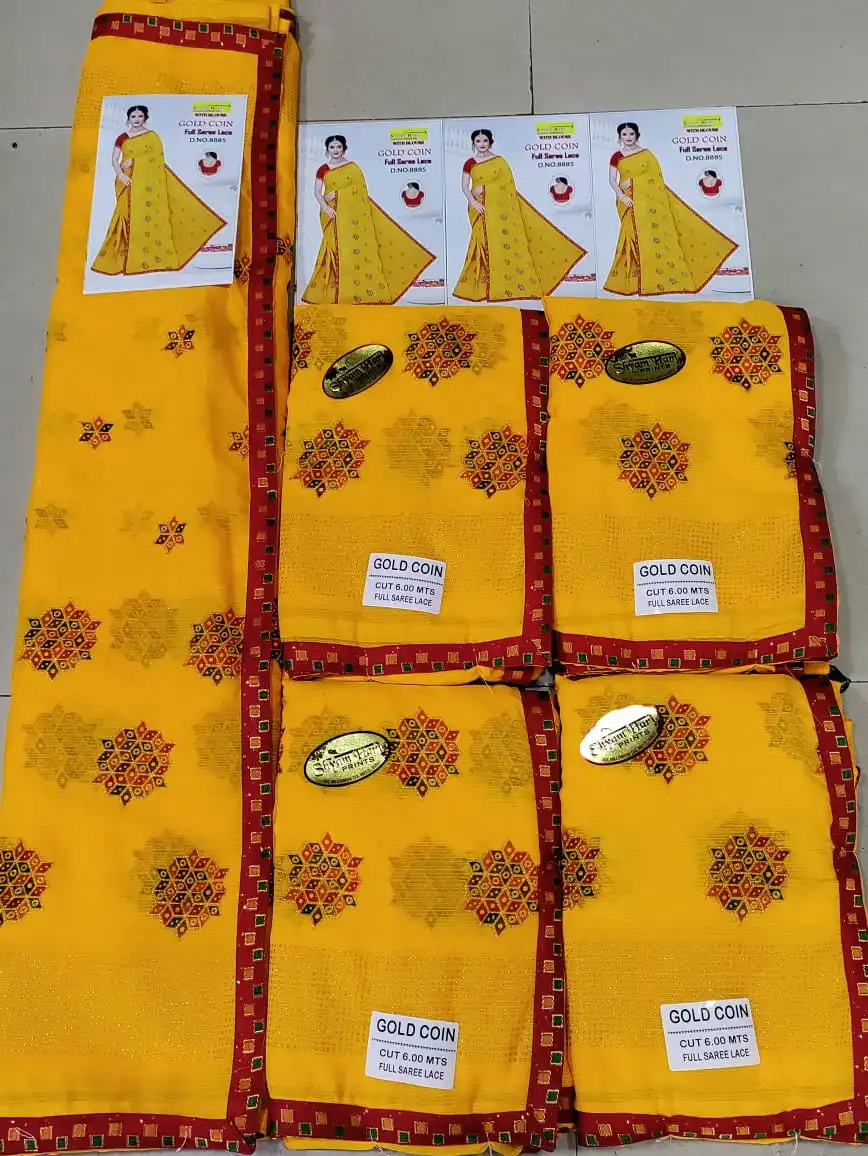 Saree: | SHARMILI ZOMOTO GOLD COIN | FULL SAREE LESS WITH JARI PRINT ONLI GOLD WITH FOM PACKING |