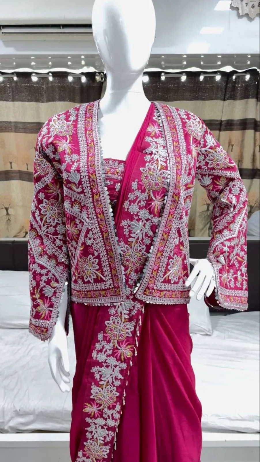 Saree: Heavy Chinon ,Embroidery cording work ,With jacket -Heavy Banglori Embroidery cording work ( full Stiched)