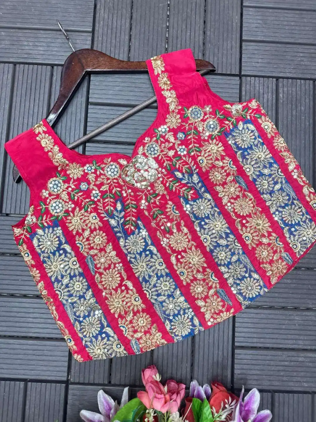 | Blouse: | Hevay crep Work- Embroidery Sequence work (full Stiched) Size- Full Stiched upto 42 |