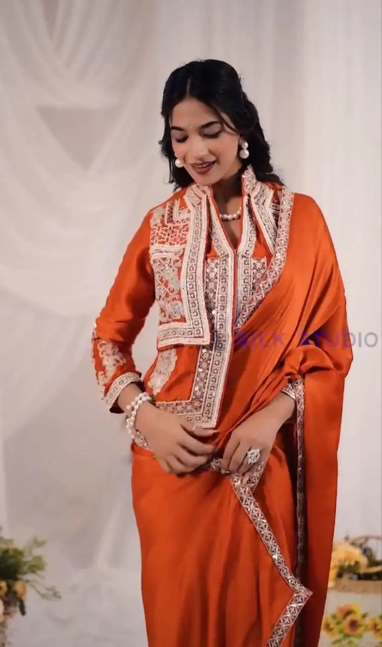 | Saree: | Heavy Rangoli Work: Embroidery sequence cording work |