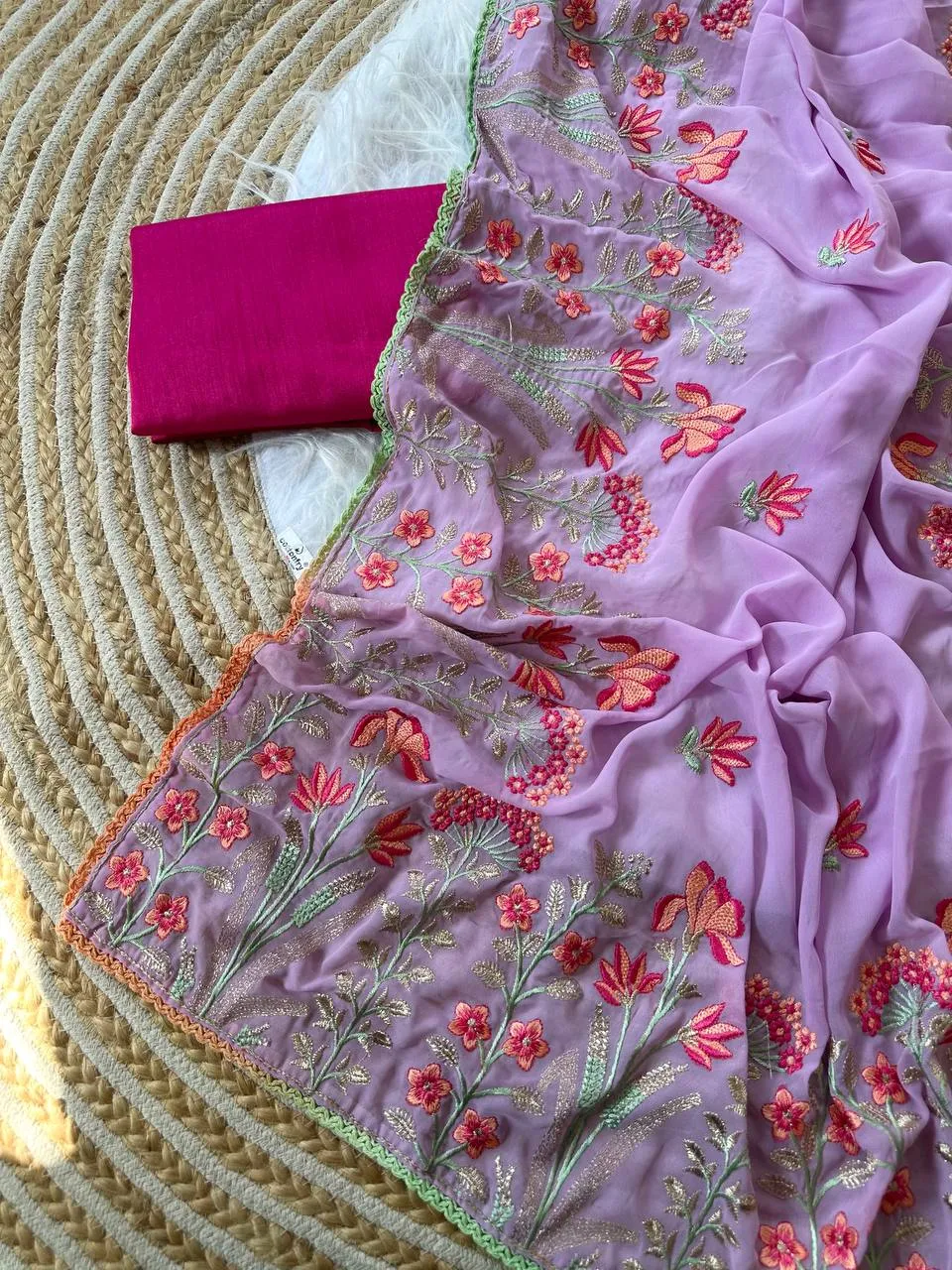 | Saree | Georgette, Multi color lace border, Embroidery work has been done by viscose thread work in all over saree |