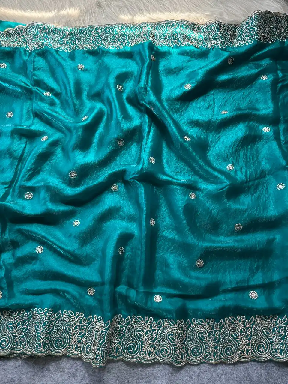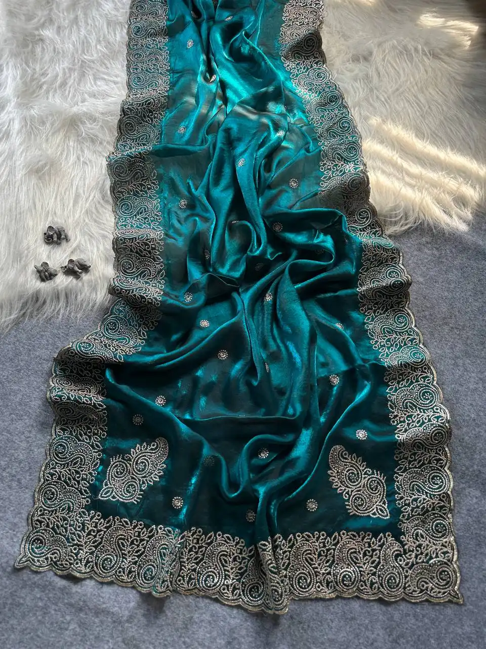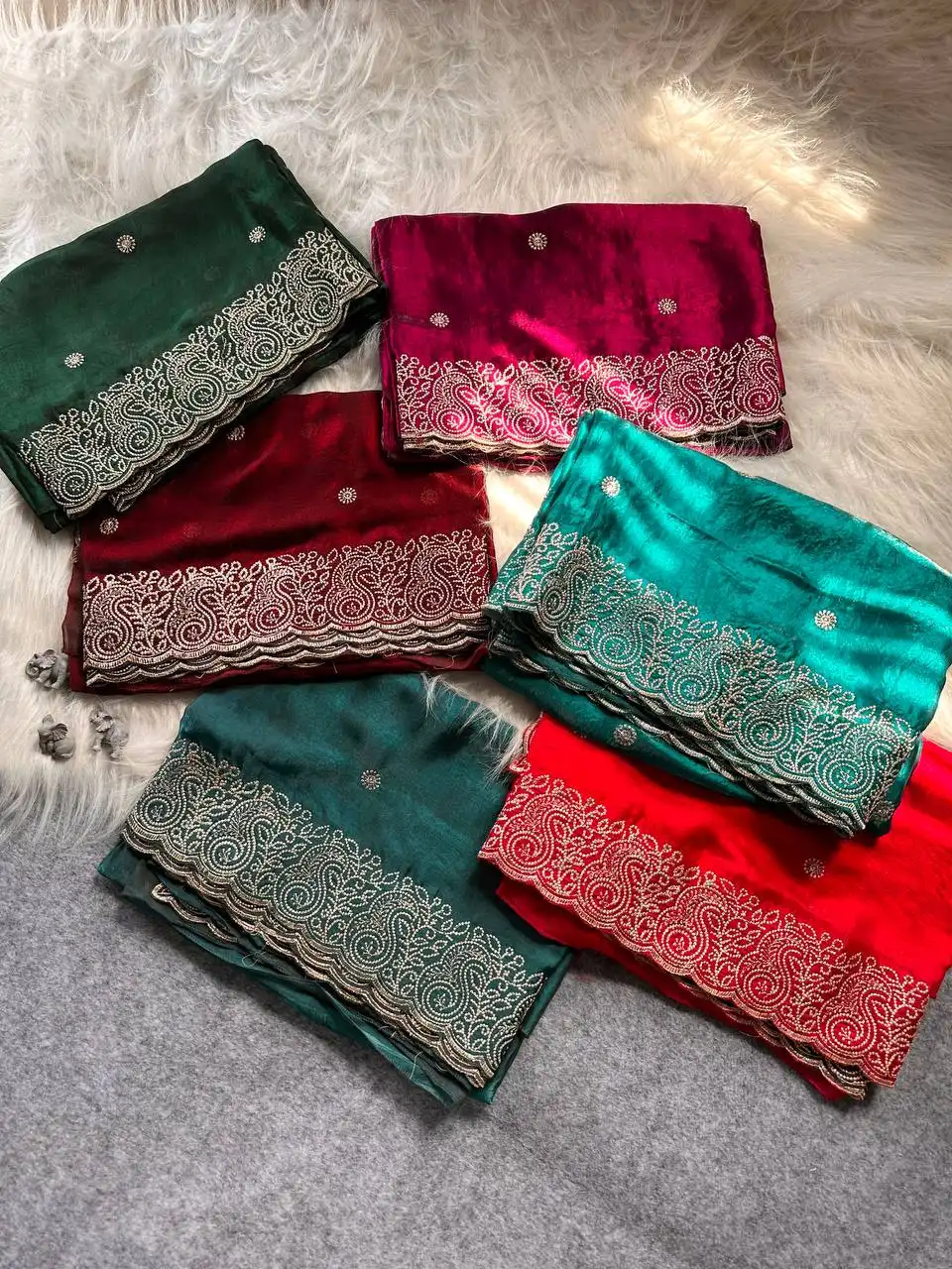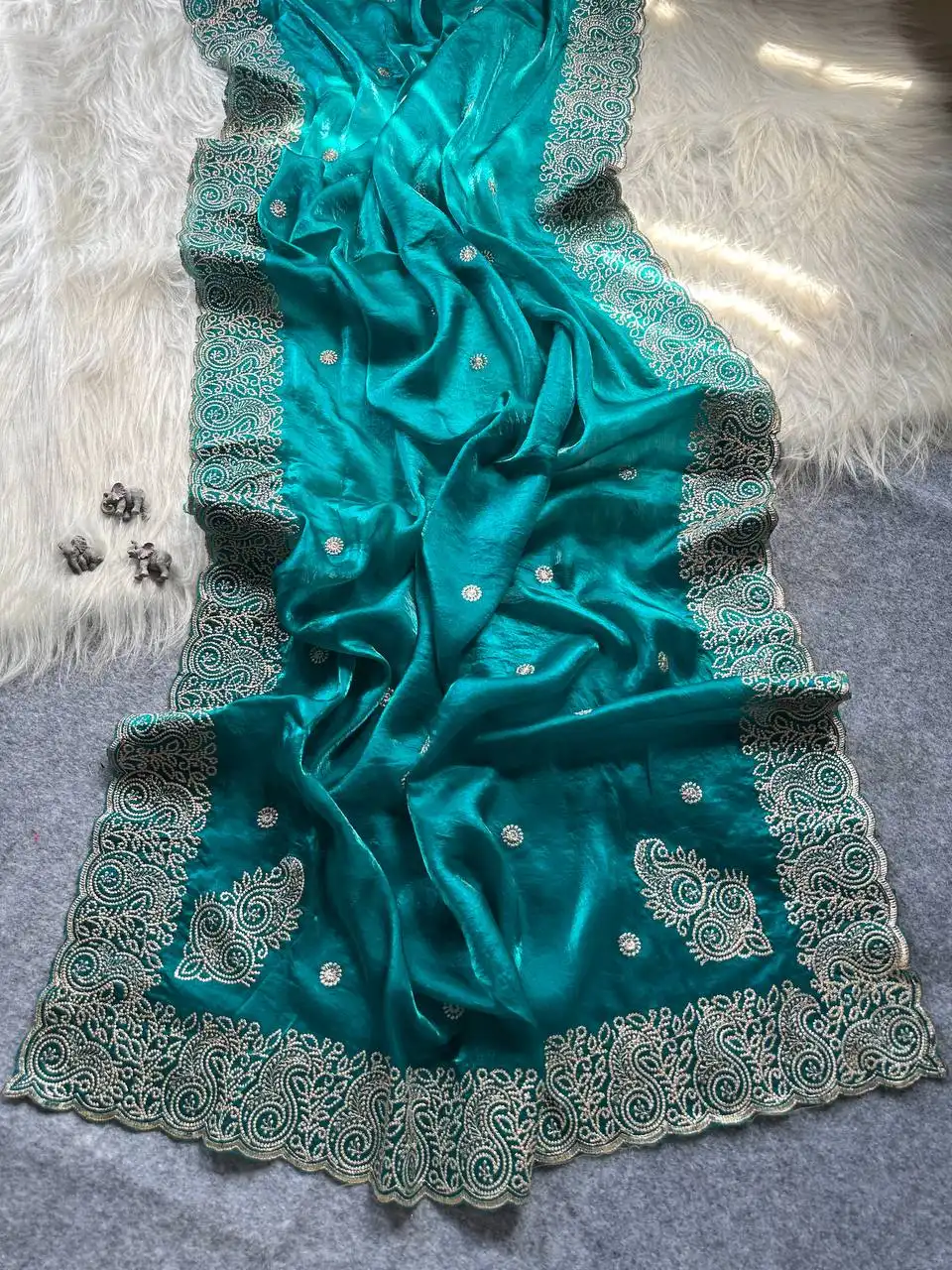 Saree: Blooming Fandy silk | All-over embroidery border and butti work