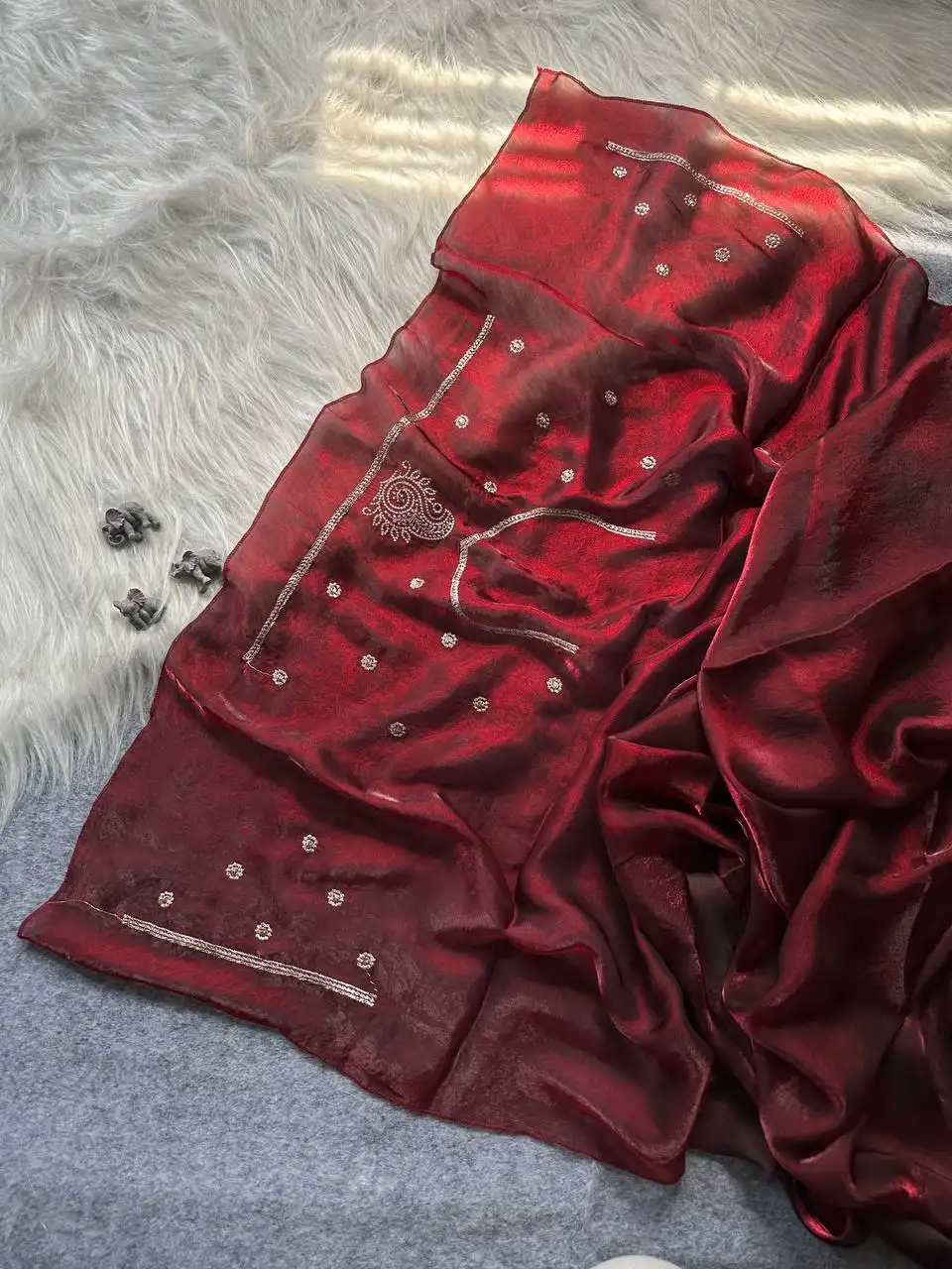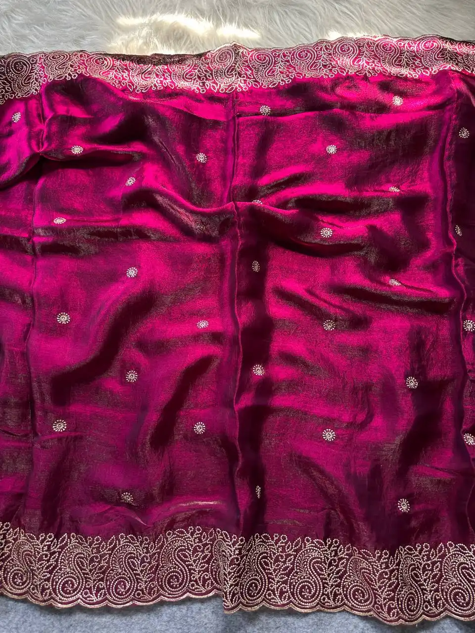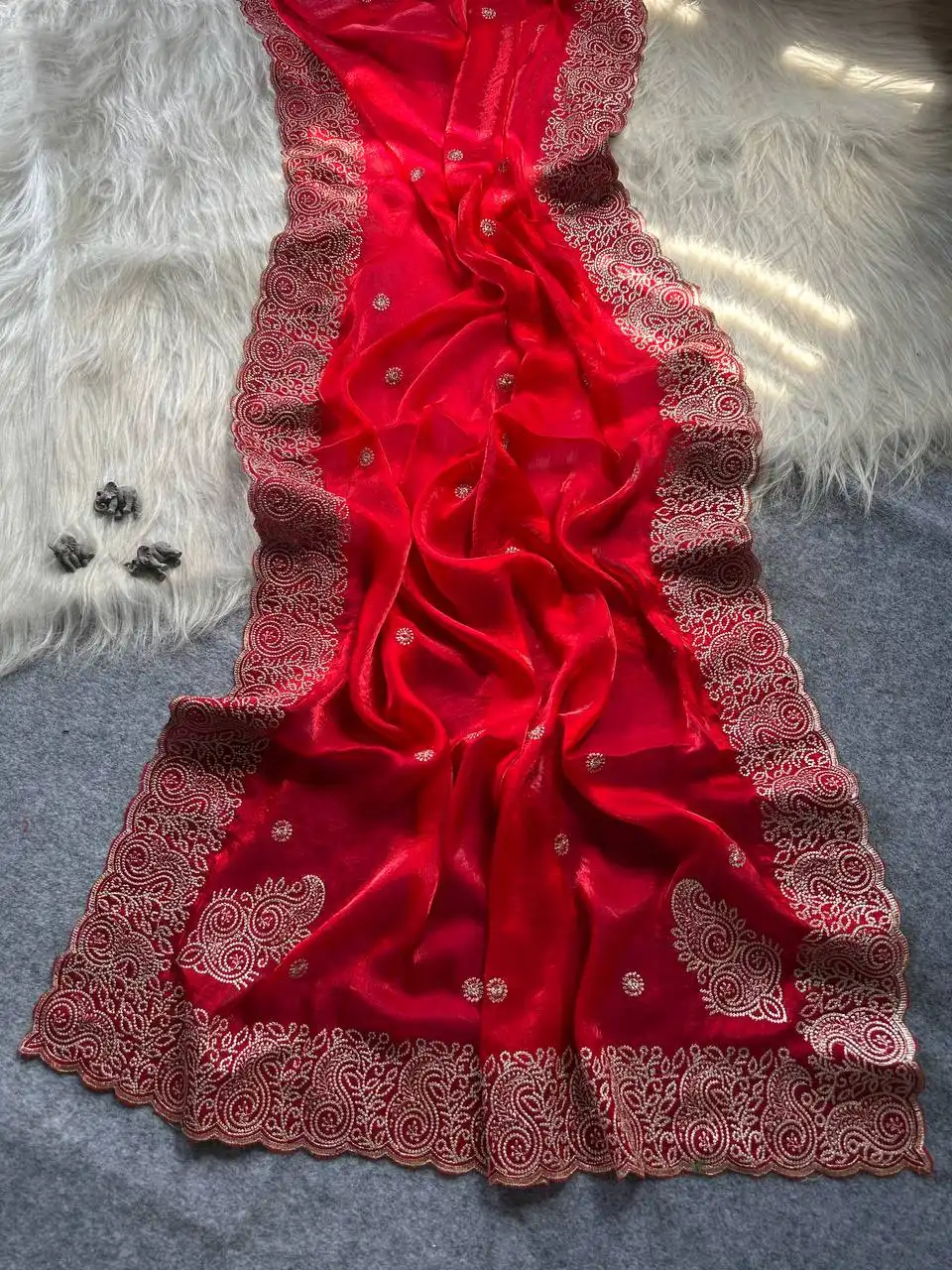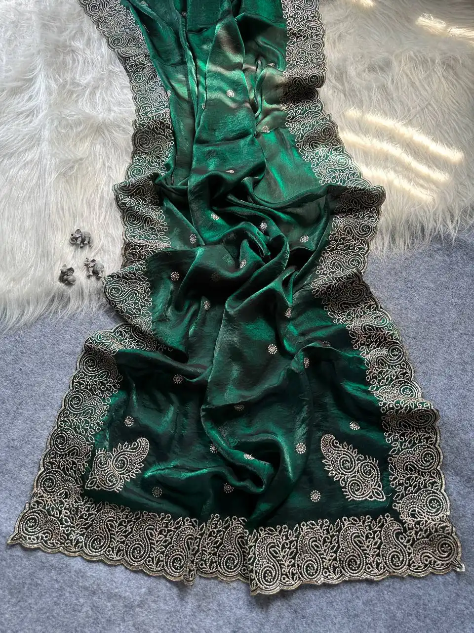 Saree: Blooming Fandy silk | All-over embroidery border and butti work