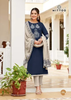 Mittoo Festiva Rayon Weaving Kurti Pant With Dupatta