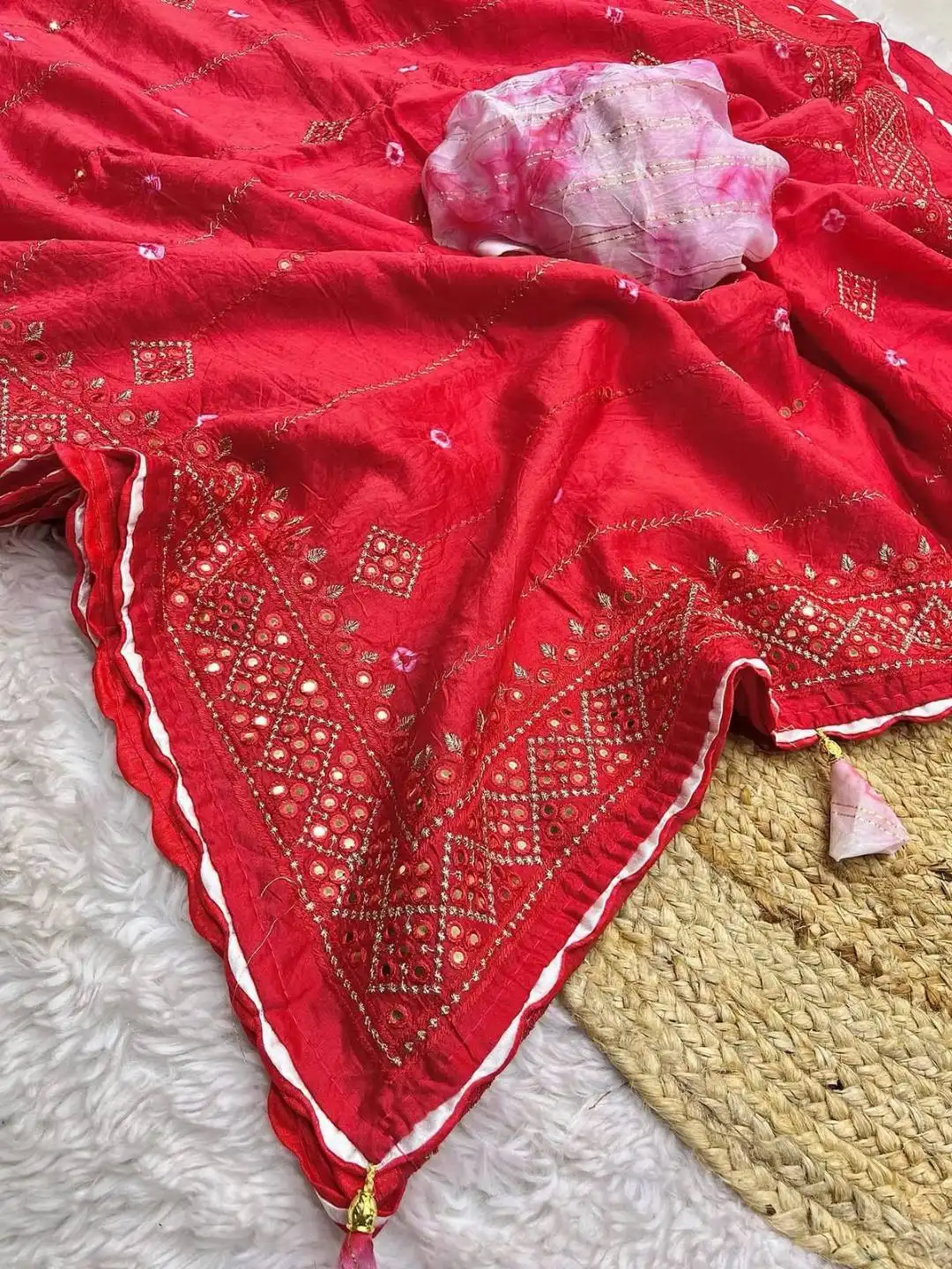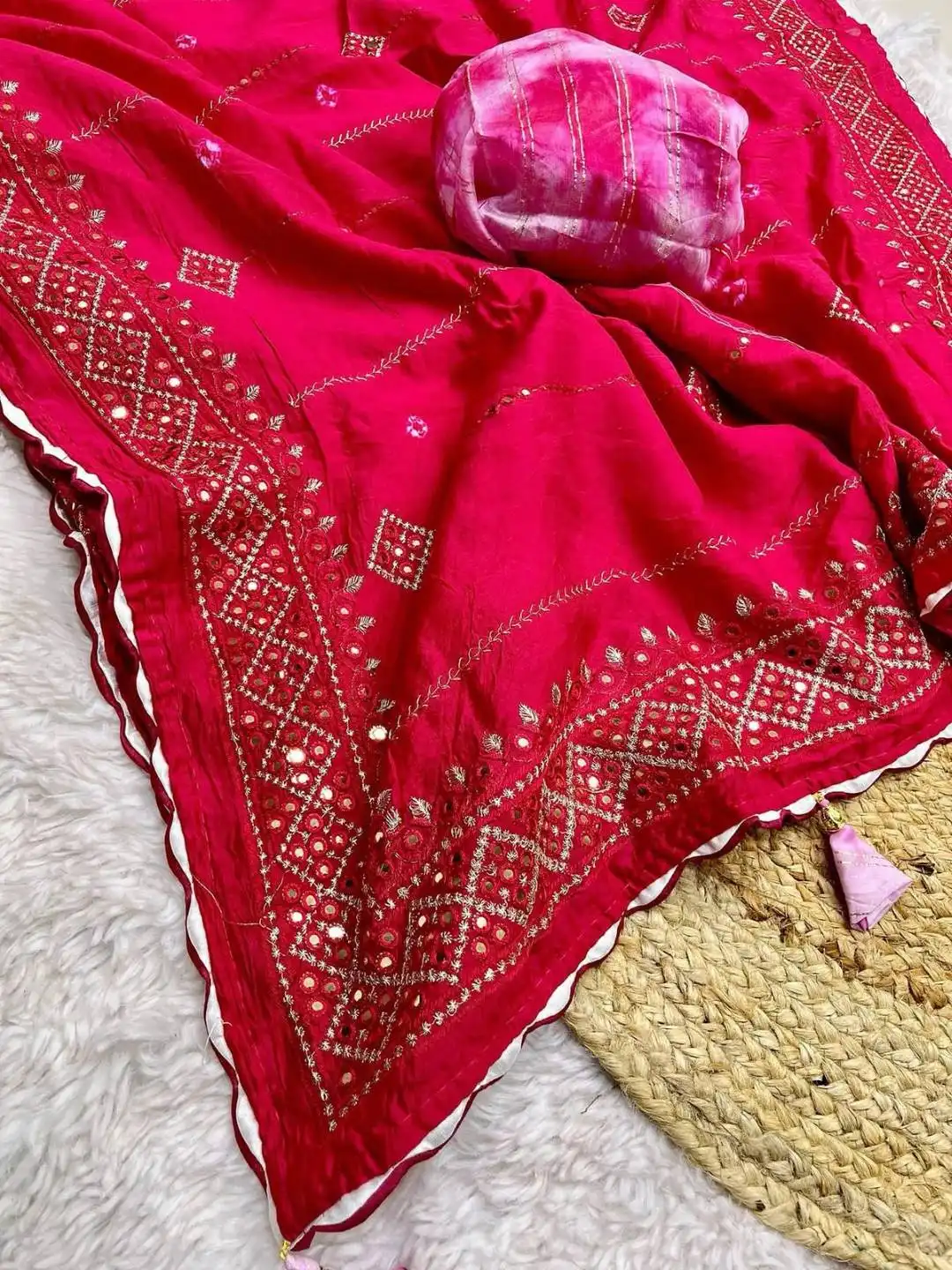 Blouse: | Soft chanderi sibori blouse (unstitched) |